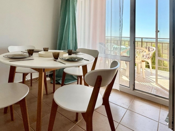 We offer you a cozy and fully equipped 3-room apartment for sale in the well-maintained Holiday Fort Golf Club complex in Sunny Beach. The apartment is located on the second floor and has a living area of 64.36 m². It is ideal for year-round use or as an attractive investment for rental purposes.