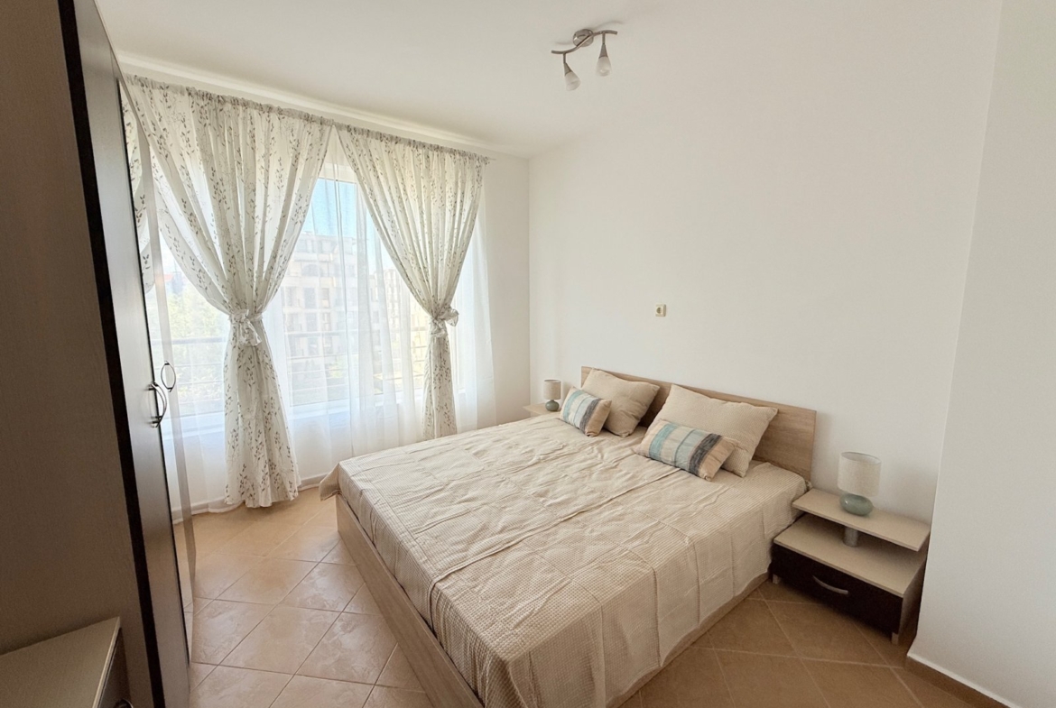 For sale is a beautiful, modern three-room apartment in the Solis residential building, located in the southern, quiet part of the popular resort of Sunny Beach in Bulgaria.