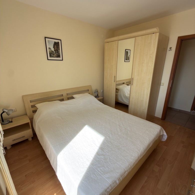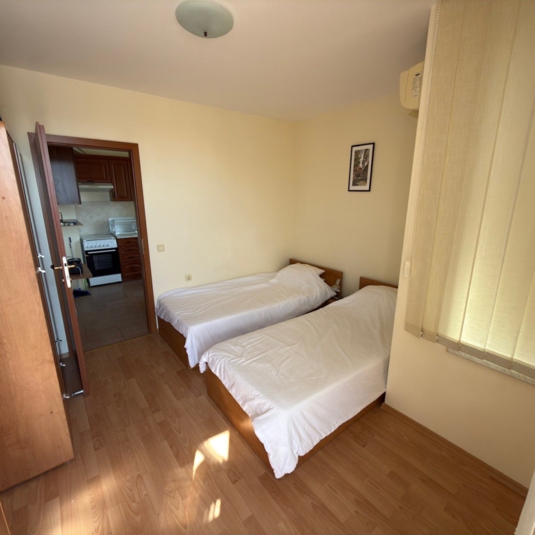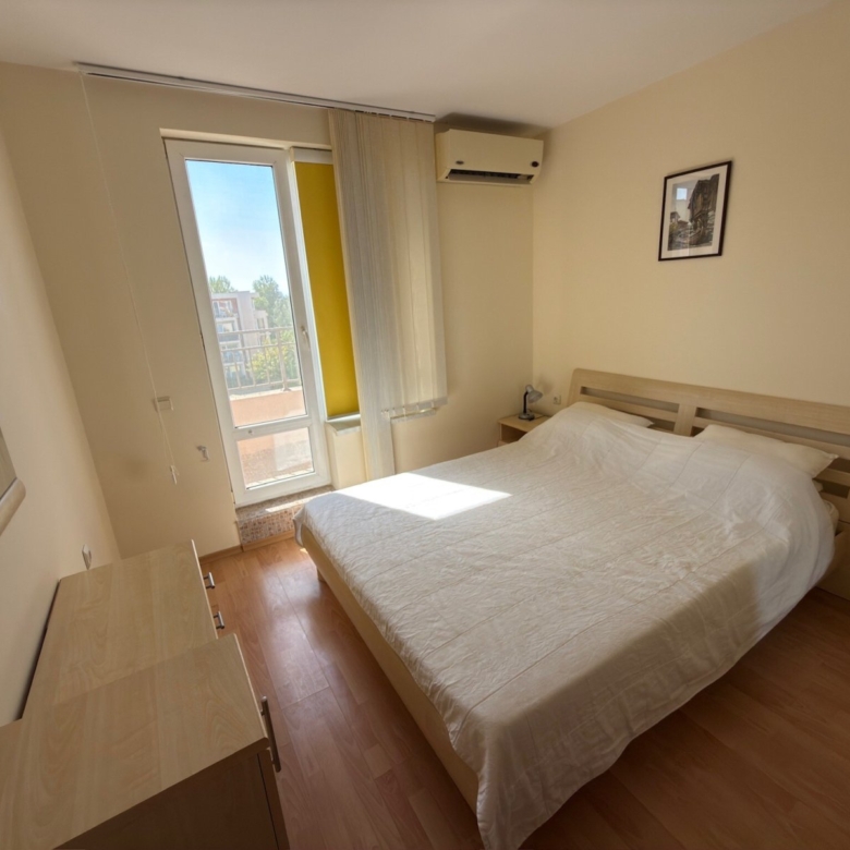 This attractive three-room apartment with 66 m² of living space is located in the popular holiday and residential complex Holiday Fort on Sunny Beach. The apartment is on the 4th floor of a modern building with an elevator and impresses with its well-thought-out layout, bright rooms, and a quiet location within the complex.