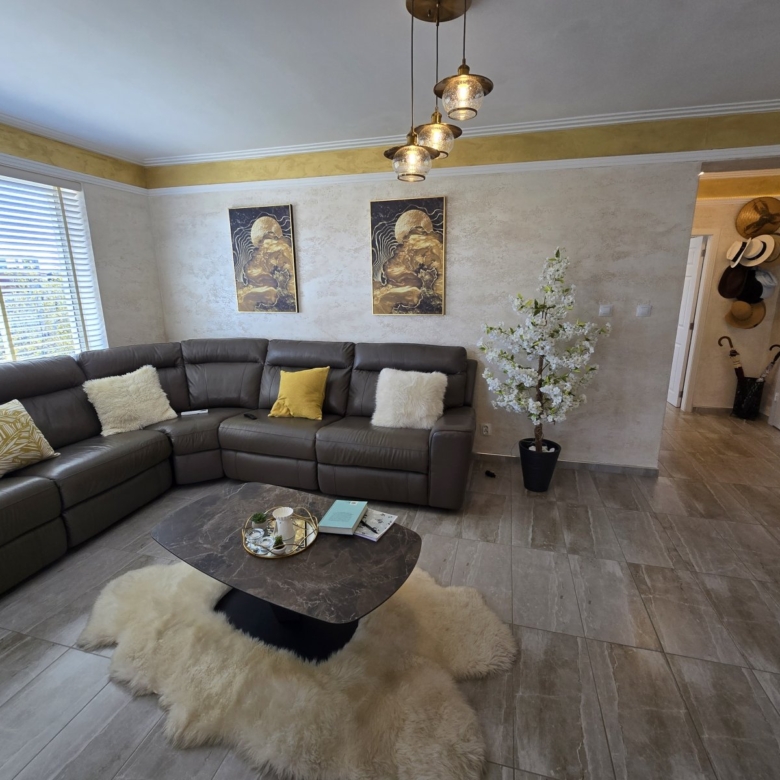 The apartment is on the 5th floor of a modern building with an elevator and impresses with its smart layout, premium furnishing, and bright, airy atmosphere.