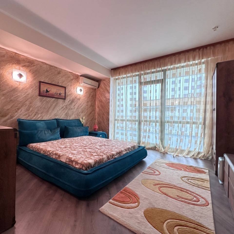 We offer for sale a stylish three-room apartment in the “Vavilon” residential complex in Sunny Beach. The apartment is modernly renovated, furnished with high-quality furniture, and has two bathrooms with shower cabins. The total area is 120 m². A spacious terrace with a partial sea view adds extra appeal to this offer.