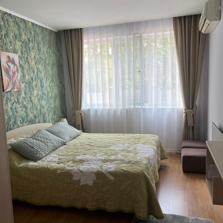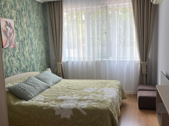 For sale is a bright and fully furnished three-room apartment in the well-maintained residential complex Green Fort, ideally located between Sunny Beach and Sveti Vlas, just about 250 meters from the beach.