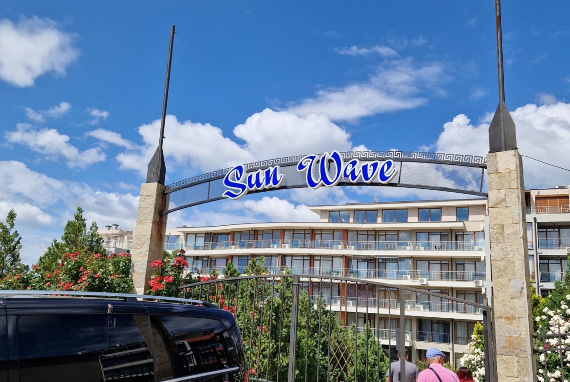 The beach strip begins just 50 meters from the Sun Wave complex, where there is both a public beach and a high-comfort zone (for a fee). There are also outdoor bars, water activities, and lifeguard towers.