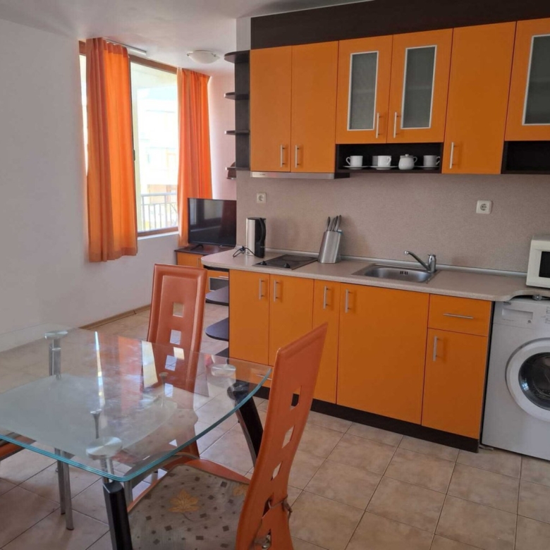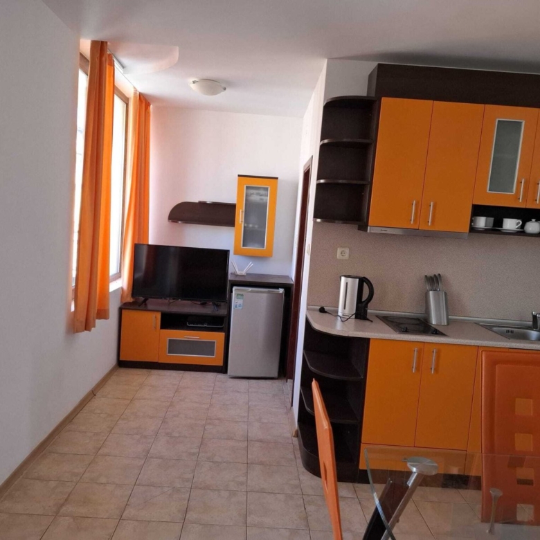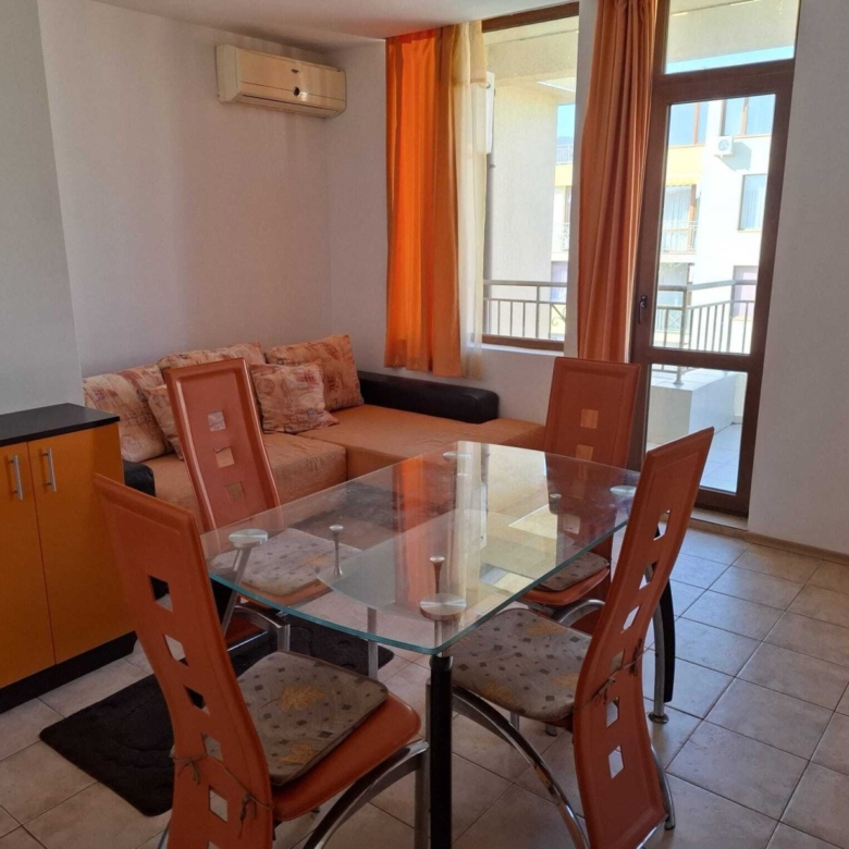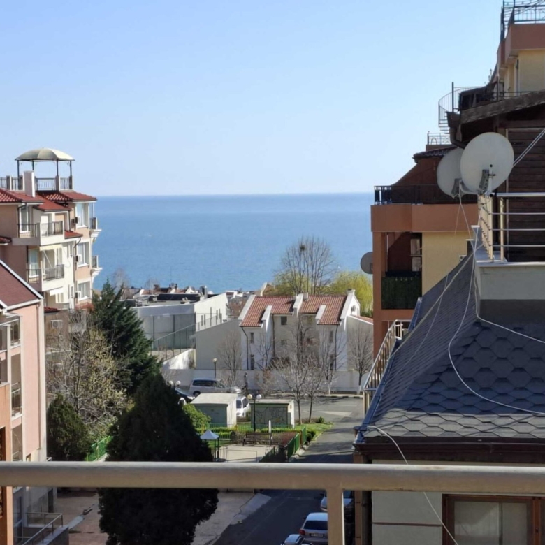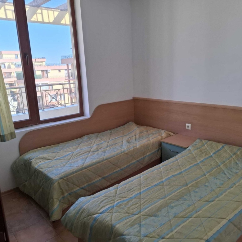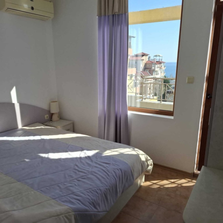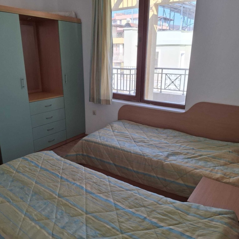 The apartment consists of a spacious living room with a kitchenette, two bedrooms, a bathroom, and a balcony with sea views. The complex is situated in a quiet area and is maintained year-round. Sveti Vlas is a charming coastal town on the Bulgarian Black Sea coast, just a few kilometers from Sunny Beach and the UNESCO World Heritage Site of Nessebar.