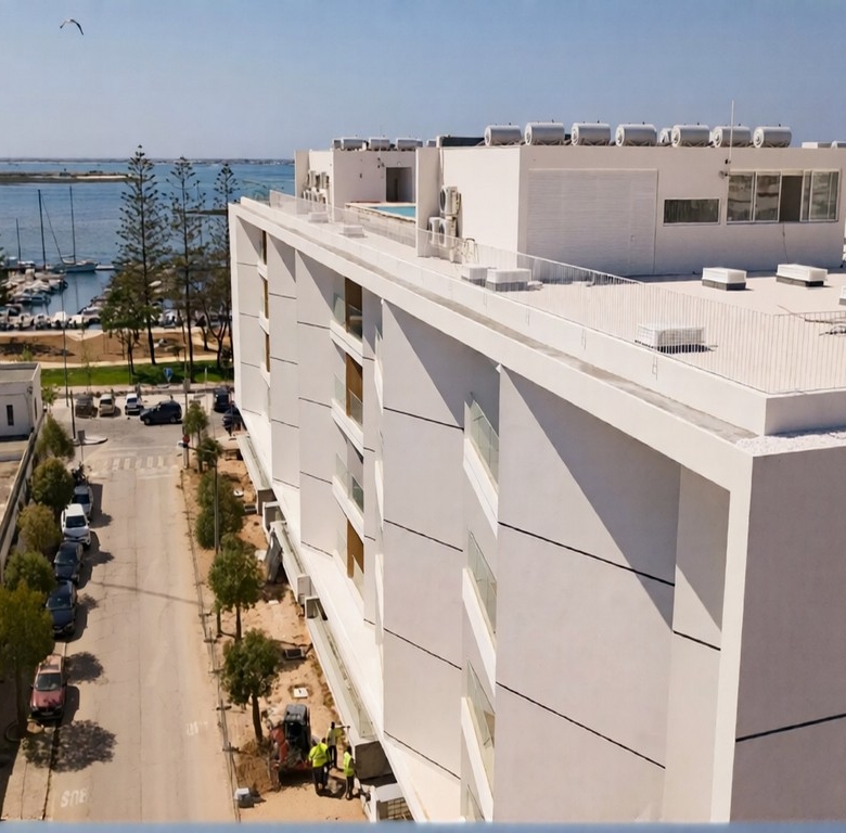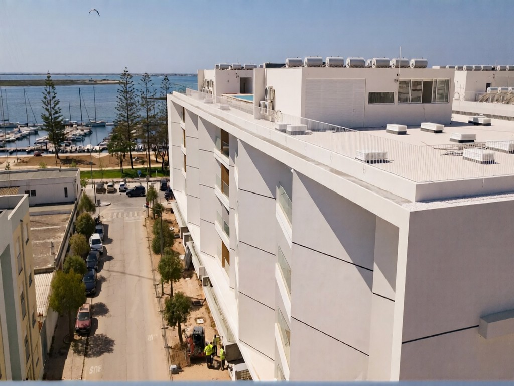 Spectacular luxury private condominium located in the center of Olhão, on the 1st water line, with magnificent views over the Ria Formosa.