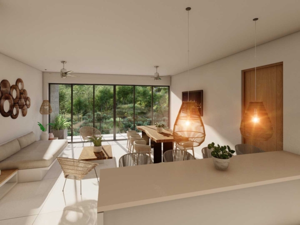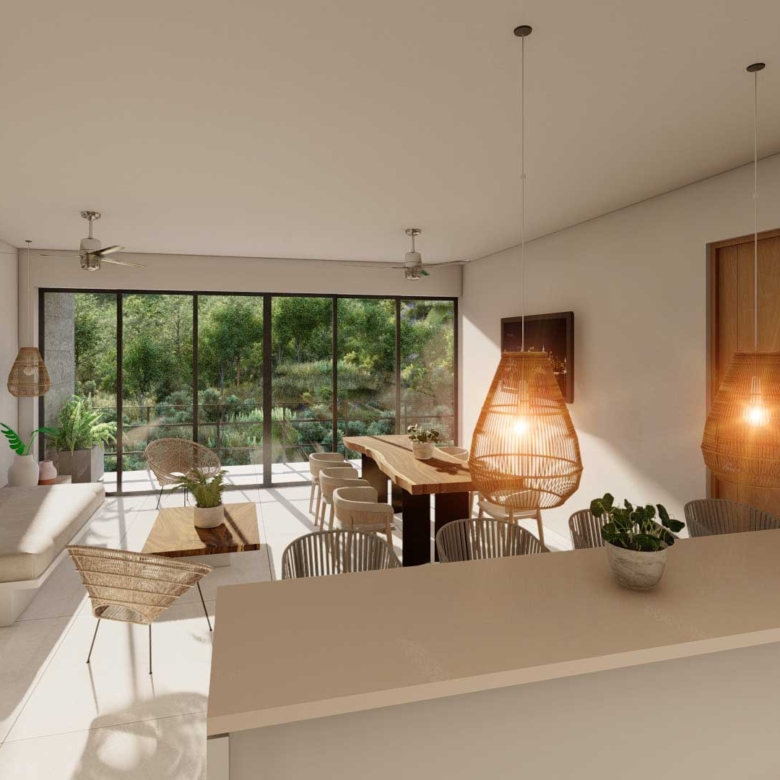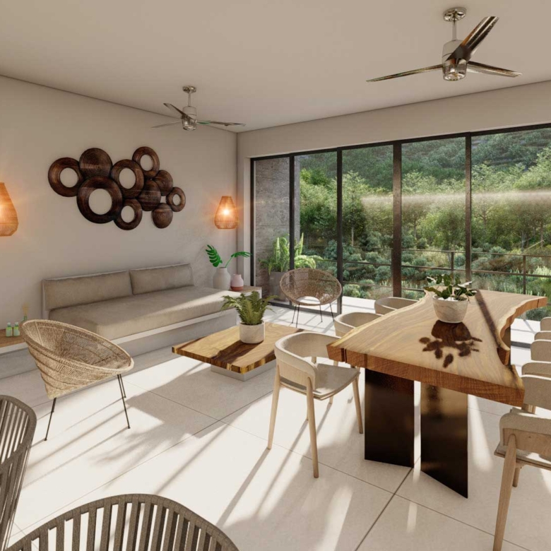 Located in Santa Cruz, Huatulco. This modern 2 bedroom, 2 – 2.5 bathroom condo boasts 1,405 Ft2 of living space designed to suit your unique lifestyle. Indulge in relaxation by the refreshing swimming pool or unwind on one of the multiple terraces. For those seeking balance and tranquility, the wellness area is an oasis for yoga and relaxation, providing a serene escape from the world. Located just steps away from the tranquil Santa Cruz Beach, one of Huatulco’s most serene spots! Become a Biaani homeowner today! Biaani 2 Bedroom Condo is priced at $6,756,480 MXN but have been converted to USD for search purposes only. *Prices are subject to change without notice.