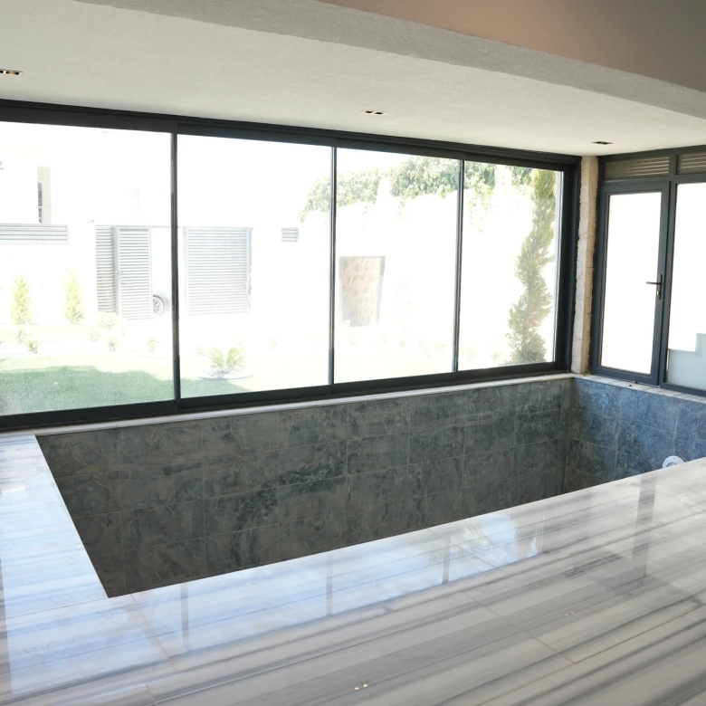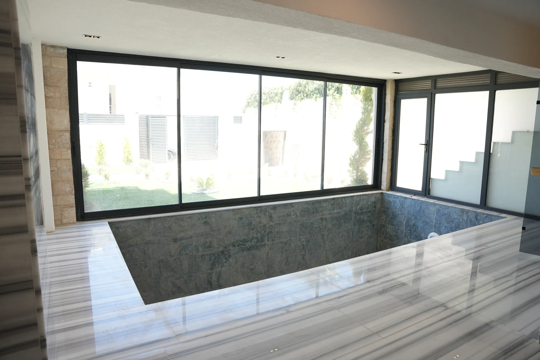 House #1, a testament to modern comfort and functional design, features a well-conceived layout across two floors. The base floor encompasses a spacious kitchen seamlessly integrated with a living room area, creating a warm and inviting space for family gatherings and social events. A bathroom equipped with a bathtub and an infrared sauna provides a sanctuary for relaxation and rejuvenation. A separate toilet, a storage room, and a garage with ample storage and parking complete the base floor’s amenities. Air conditioning ensures year-round comfort.