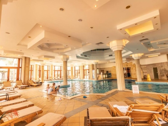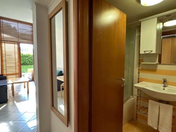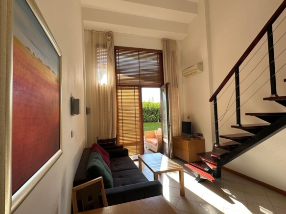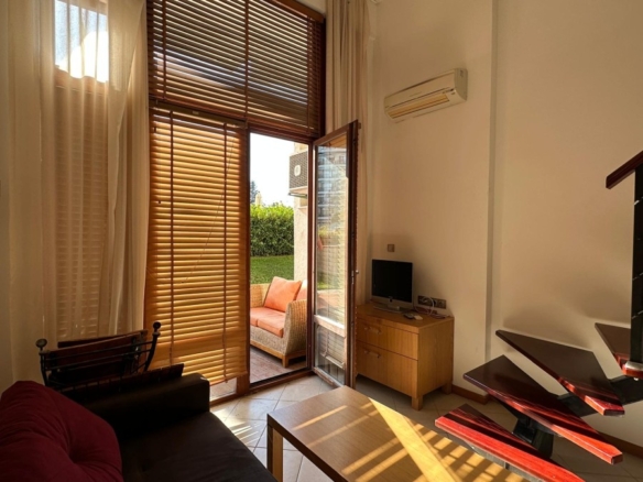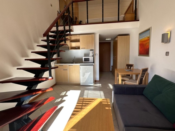 2 level apartment, 67 sq.m., on the first sea line, in Emerald beach resort, Ravda We offer for sale fully furnished apartment in the beach front SPA resort Emerald in Ravda village. The apartment is situated on the ground floor and has a total living area – 66.74 sq.m. It is a 2-level apartment and comprises of: kitchen with living-room, bathroom and a terrace on the first level and a bedroom on the second level. The apartment is fully furnished, boasts of its high ceilings and direct access to the gardens and pools in the complex. Emerald Beach Resort is an elite complex on the beachfront by the sea in the resort village of Ravda. The complex spreads over 60 hectares and consists of 5 clocks with 780 units in total. It impresses with its territory and amenities for holidaymakers and owners. This is a quiet place for your family holidays, is also possible to live all year round. The complex has excellent rental potential all-yearr-ound. On-site amenities: · 5 pools, one of them is indoor pool of 200 square meters with built-in Jacuzzi · Spa center with sauna, Turkish bath, aroma therapy, fitness center · 2 tennis courts · childrens playground · animation for kids · beach volleyball court · free parking · security · restaurants · lobby bar · reception Maintenance fee – 60 EUR/sq.m.