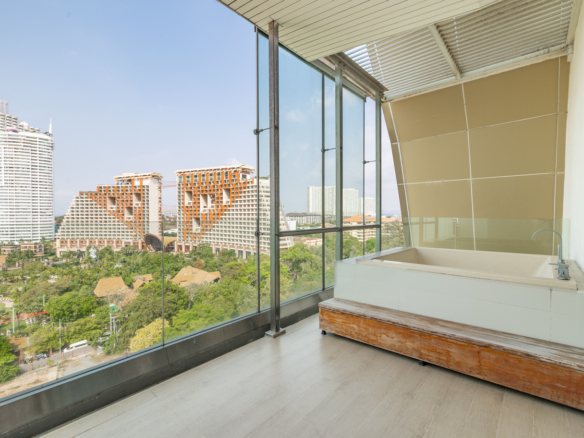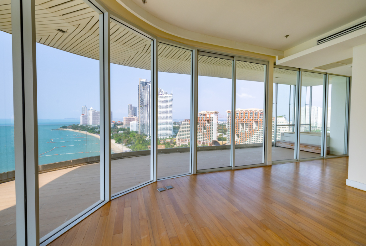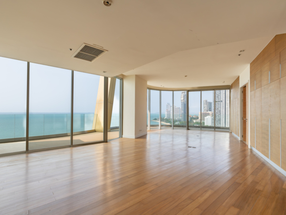 This expansive penthouse at The Cove offers over 500 square meters of blank canvas space, perfect for creating your dream beachfront home. With two storeys and breathtaking sea views, this unit provides an incredible opportunity to design a custom living space in one of North Pattaya’s most sought-after locations.