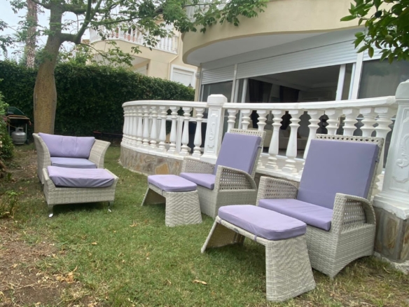 Private landscaped garden with a sitting area, ideal for relaxing or entertaining