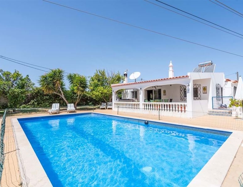 This 2+2 bedroom villa for sale is located in a residential neighbourhood in Albufeira, just a short drive from the city centre and all its conveniences. Sold furnished, this villa also comes with the benefit of stunning outdoor spaces and tranquil surroundings.This single story property comprises an inviting entry hall leading to a spacious living and dining room adorned with a cosy fireplace, a fitted kitchen, complete with a convenient pantry, two comfortable bedrooms, two bathrooms, a WC, and two additional rooms currently being used as extra bedrooms.Externally, there is an expansive covered terrace, perfect for dining and lounging, a BBQ area, a spacious patio just outside the kitchen for morning coffee or al fresco dining, a large swimming pool, plus meticulously maintained gardens throughout the property.Additional features include:double glazed windows, fitted wardrobes, solar panels and a large garage for private parking.Located less than a 10 minute drive from Albufeira’s city centre, this property benefits from tranquil surroundings whilst being conveniently close to all amenities, including restaurants, cafes, bars, and even the vibrant marina. You can also find stunning beaches nearby, such as Praia de Albufeira and Praia dos Pescadores just five kilometres away.