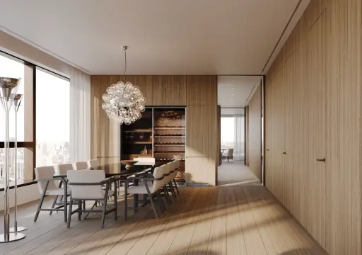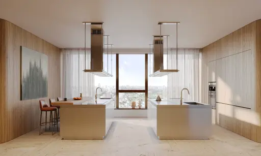 Bright, Open-Plan Living in the Heart of BangkokThis penthouse condo in Lumphini is a rare find, especially with 303 sqm of interior space spread across multiple floors. The moment you step in, the floor-to-ceiling windows grab your attention, flooding the rooms with natural light and offering expansive cityscape views. You’ll probably spend most of your time in the open-plan living and dining area where the neutral tones and wood flooring create a warm, contemporary feel that’s easy to relax in.Designed for Entertaining and ComfortThe dining area easily seats eight around a sleek glass table, surrounded by cushioned chairs with armrests — perfect for hosting or family dinners. There’s even a built-in wine fridge nearby if you enjoy a good bottle. The kitchen stands out with its dual islands, integrated sinks, and stainless steel appliances, making it a great space if you like cooking or casual brunches at the bar stools.Private and Stylish Bedrooms and BathroomsWith three bedrooms and four bathrooms, space isn’t an issue. Bathrooms feature large layouts with modern fixtures like floating cabinets, amber vessel sinks, walk-in showers with glass partitions, and a freestanding tub for lounging. The attention to detail with copper hardware and recessed lighting adds a subtle luxury touch.As a penthouse with a rooftop balcony, you also get a private spot to enjoy the greenery of the nearby park and unwind with panoramic views. And being freehold in such a prime urban location means this is not just a comfortable home but a solid investment too.