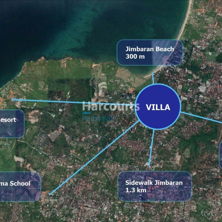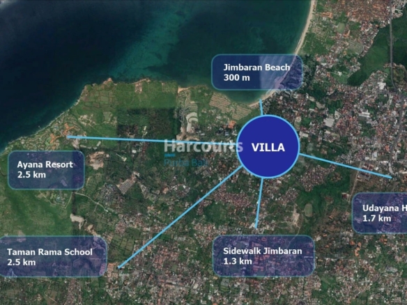 Movenpick Hotel 200 m, Sundara Beach Club 250 m, Jimbaran Beach 250 m, Rock Bar Ayana Hotel 2.5 km.