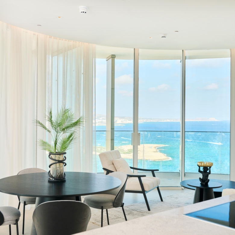 Offering stunning views from the 19th floor, this residence captures the essence of refined coastal living.Its open-plan layout and natural materials invite calm and sophistication, while access to beach clubs, spa facilities, and designer boutiques completes a truly cosmopolitan experience.