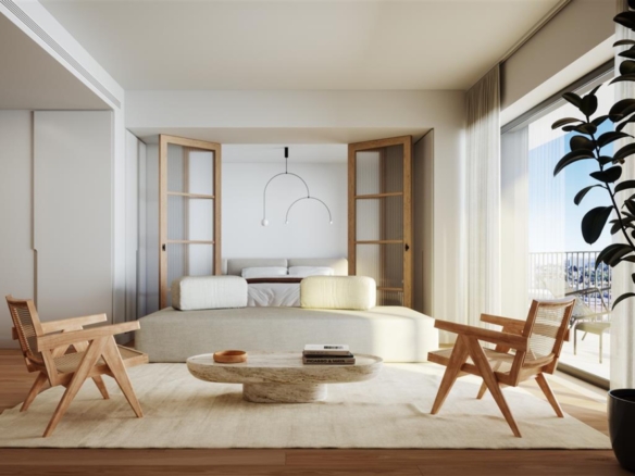 3 Bedroom apartment, new, 132 sqm (gross floor area), 3 parking spaces and balcony, at the Campo Novo condominium, in Campo Grande, Lisbon. All apartments have large areas, plenty of natural light, balconies, parking, and storage areas. .The apartments are extremely comfortable featuring elegant finishes. More than just a set of buildings, Campo Novo is a sustainable ecosystem of its own, with a playground, shops, cafés, restaurants, and offices. It stands out for its luxury proposal in every detail: heated indoor swimming pool, rooftop, parking with charging station for electric vehicles, and a gym. Campo Novo is located in Campo Grande, one of the most central areas of greater Lisbon, with a wide range of shops, 10 minutes from Cidade Universitária and the equestrian centre. It is within a short walking distance of several schools, health clinics and the famous Campo Grande garden. It also benefits from excellent road access, being close to Segunda Circular and a vast transport network, namely the underground station (green and yellow lines). Campo Novo is here to rejuvenate Lisbon with a sustainable and elegant lifestyle.
