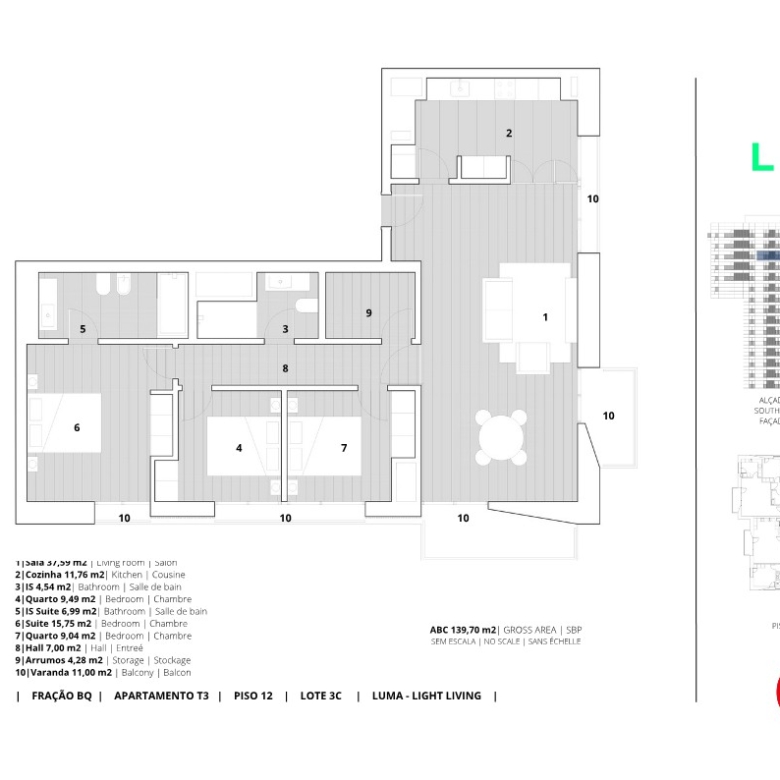 3 Bedroom apartment, new, with 129 sqm (gross floor area), 5 balconies and parking, at the Luma building, in Lumiar, Lisbon. All apartments have sophisticated finishes, with unobstructed views over the city.Luma represents the construction of a new cosmopolitan Lisbon that gives new life to the city. With finishes that provide comfort and sophistication, this project invites residents to enjoy, through their balconies, the contrast between the city and the several parks that are so typical of this area. Comfort combines with convenience, with the development having private parking and communal outdoor areas with a playground for all its residents.It is a 5-minute walk to Parque Oeste in Alta de Lisboa, Jardins de Sta. Clara, local shops and the underground station, allowing all residents to reach the city centre in just a few minutes, 6 minutes from Cidade Universitária and 14 minutes from Marquês de Pombal. It is also a 10-minute walk to schools, such as Colégio de São João de Brito and Academia de Santa Cecília. Luma represents a new way of living big in the centre of Lisbon, with all the comforts and features of a well-off life in the city.