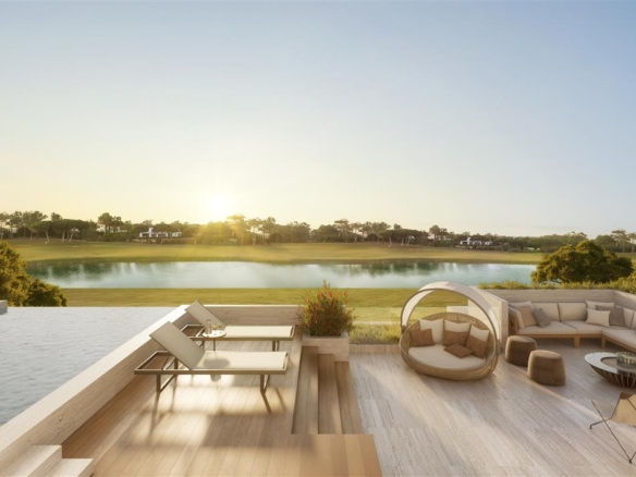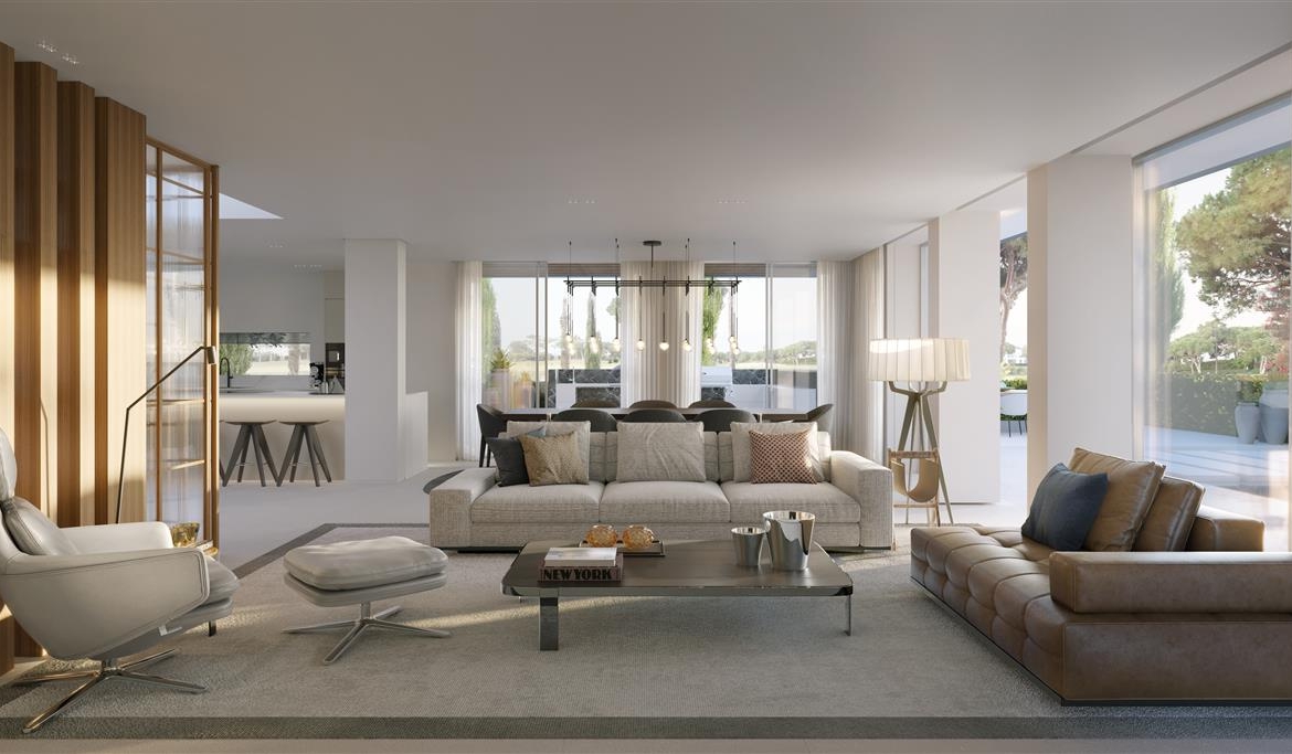 3+1 Bedroom apartment, new, with 460 sqm (gross floor area), 2 parking spaces, balconies, terrace and a garden with a private swimming pool, in One Green Way, in Quinta do Lago.The One Green Way Development is a new project located in Quinta do Lago, offering privacy and exclusivity worthy of a resort. With spectacular views overlooking the golf course to the north, this gated community has 89 contemporary residences, of which 27 are villas and 62 apartments, spread over three different types: Horizon Residences (4 to 6-bedroom), Panorama Residences (3 and 4-bedroom) and Garden Residences (3 and 4-bedroom). One Green Way invites you to enjoy the many services and amenities offered by Quinta do Lago, as well as the next generation leisure and sports facilities. Each property was carefully designed to offer the best lifestyle, with excellent indoor spaces and outdoor gardens specifically created to provide unrivalled privacy and wellbeing. The residences are distinguished by their elegant design, with the mark of a highly reputed architecture atelier, and by the choice of mature and colourful Mediterranean vegetation. The interior design specialists carefully selected all the details so as to convey a feeling of a relaxed lifestyle, for stronger connectivity, functionality and peacefulness. The resort invites moments of sharing among its residents, always respecting each one’s personal and private space, offering a large selection of amenities and services that enables them to work, engage in physical exercise or simply relax. The equipped gym, golf simulator, spa with sauna, beauty parlour and communal swimming pool are just some of the amenities offered by Green Way. There is also a next generation business centre, clubhouse, restaurant, rooftop bar lounge, another lounge for residents, a reception, concierge, shop, outdoor running and fitness track, padel courts, and a children’s playground. With a prime location, One Green Way provides easy access to the region’s best golf courses, as well as a selection of stunning beaches and the vibrant shopping area of the centre of Almancil. Merely 20-minute driving distance from Faro International Airport, Quinta do Lago has easy access to the main regional road network, enabling easy driving to anywhere in the Algarve or other municipalities of the region.One Green Way is the perfect place to enjoy a comfortable and unforgettable stay at Quinta do Lago.