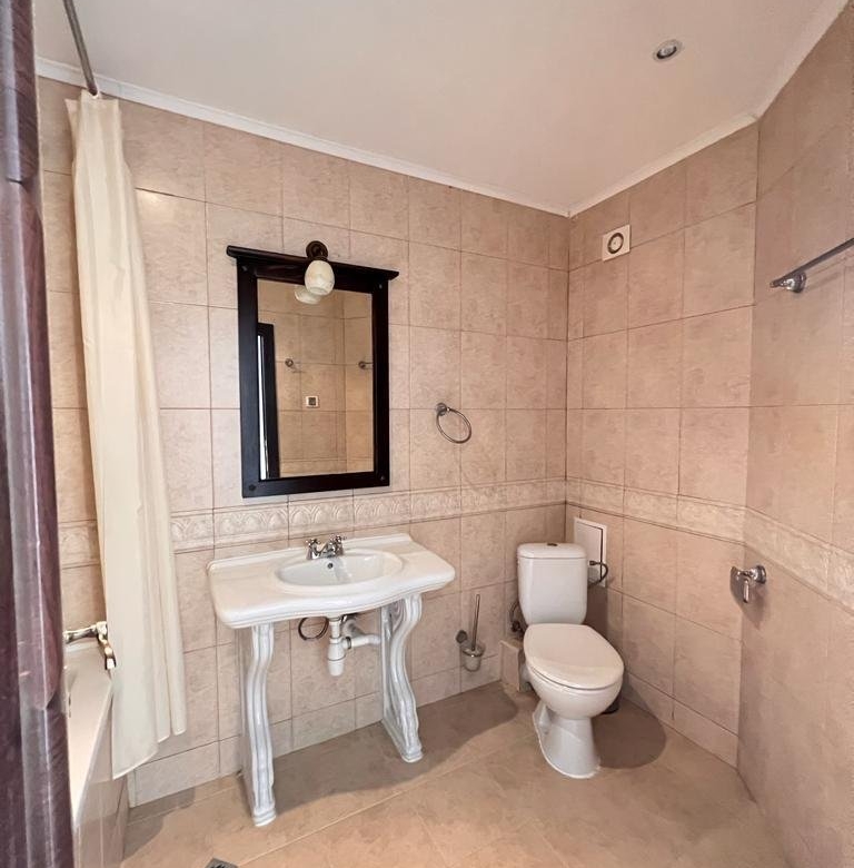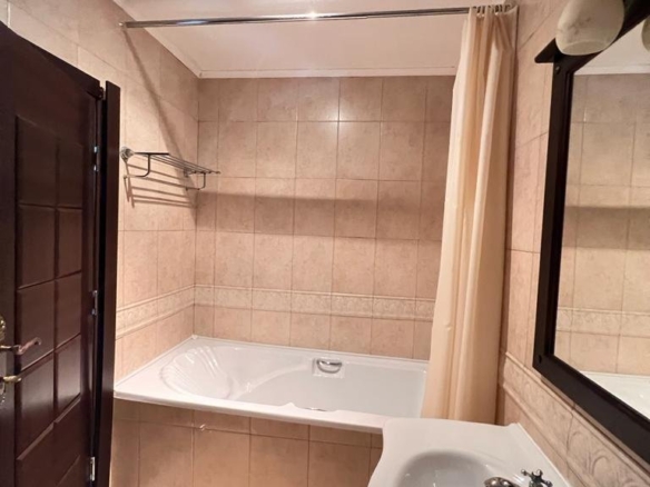 The apartment is of the penthouse type and is located on the top (sixth) floor of the building. It consists of a spacious living room with a kitchenette and dining area, three bedrooms, a bathroom with a toilet and shower cabin, a large terrace with a hot tub and sun loungers, and a bathroom with a toilet and bathtub. Each room has access to the terrace, which offers a wonderful view of the sea, the pool, and the landscaped interior of the complex.