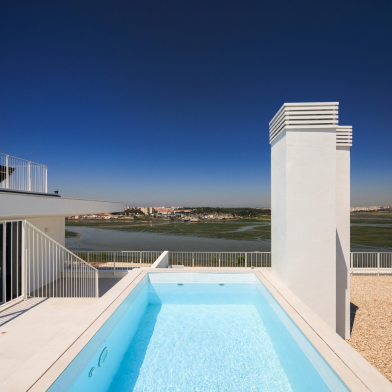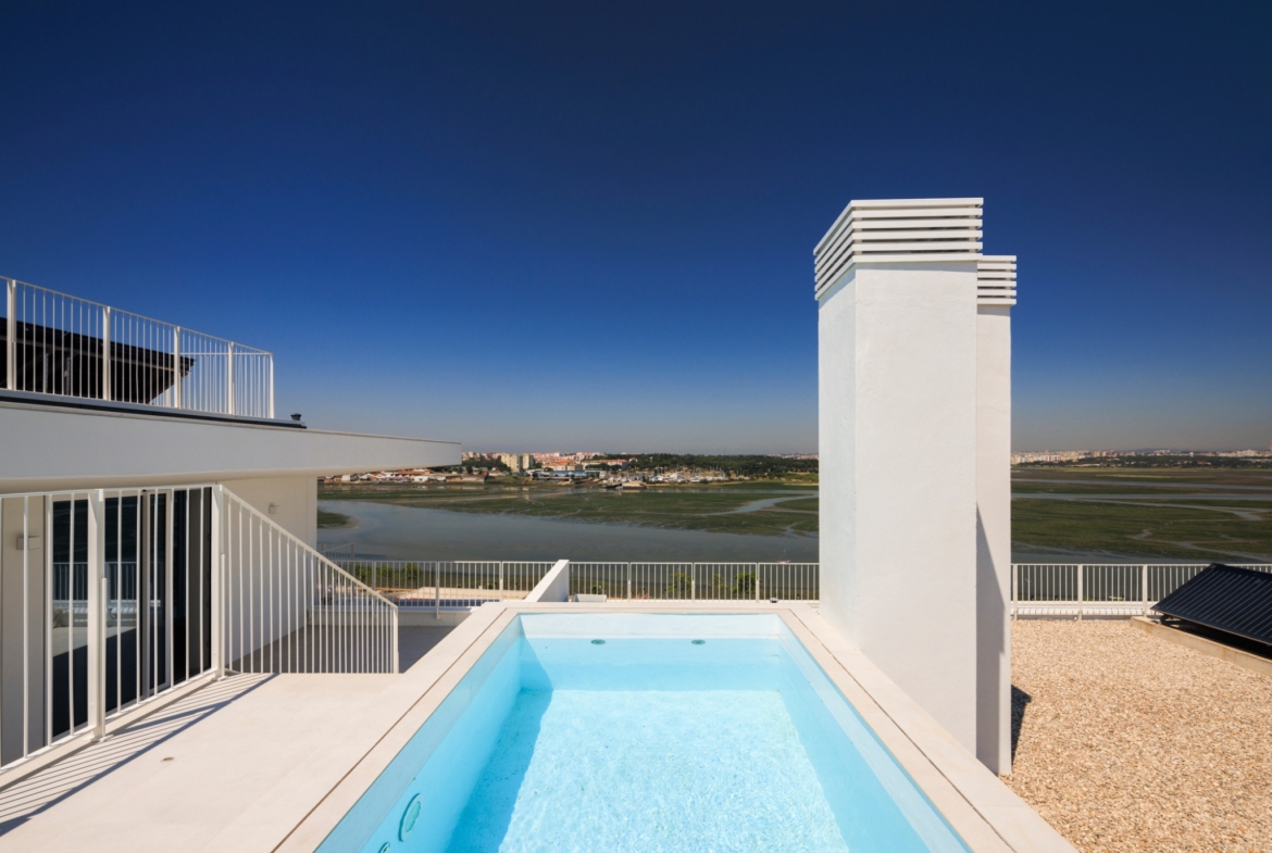 3 bedroom apartment with 128 sqm, brand new, with 2 parking spaces and 3 balconies of 12, 5 e 1 sqm, in the Colina do Outeiro, a modern and elegant gated community marked by a resort atmosphere and by the contemporary architecture featuring large areas and plenty of natural light, designed by the renowned architecture studio S+A, in Seixal. In this new gated community, it will also be possible to enjoy other amenities, such as parking spaces for cars and bikes, storage room, gym, children’s playground, playing field, gardens and communal swimming pool. With a riverfront of 14 km, the Colina do Outeiro is the perfect choice for those looking for a quiet life, with all the safety, comfort, quality in close contact with nature and just a few minutes from Lisbon.
