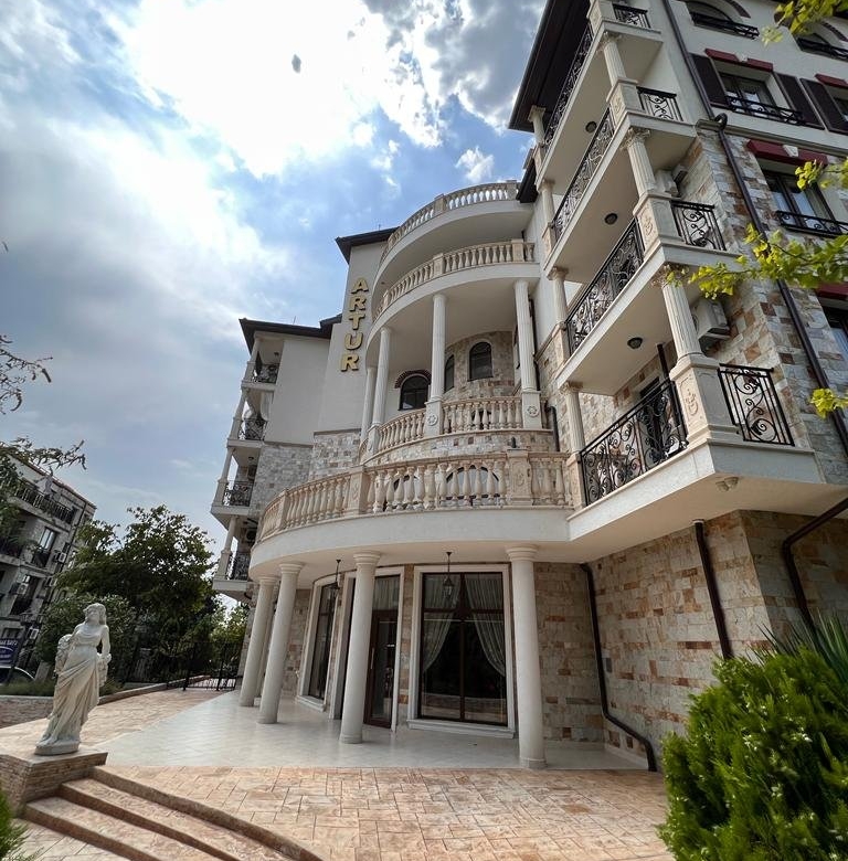 We offer you a 4-room maisonette apartment spread over 3 floors in the Arthur complex in Sveti Vlas. The apartment boasts an incredibly beautiful panoramic view of the sea, the pool, and the mountains.