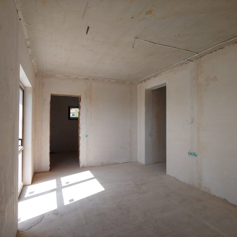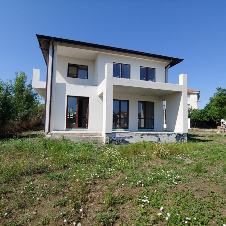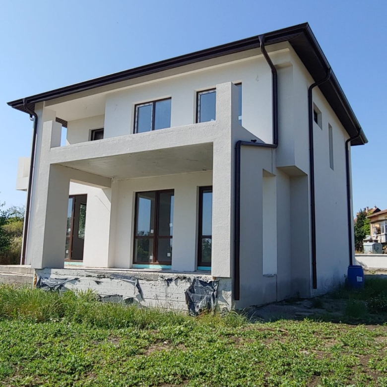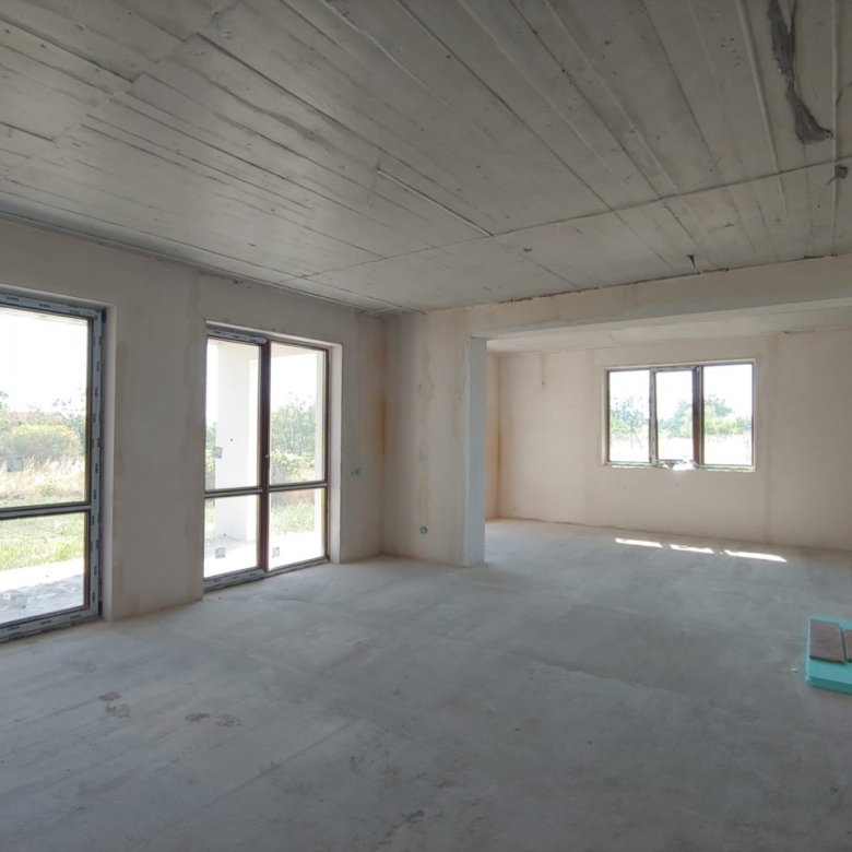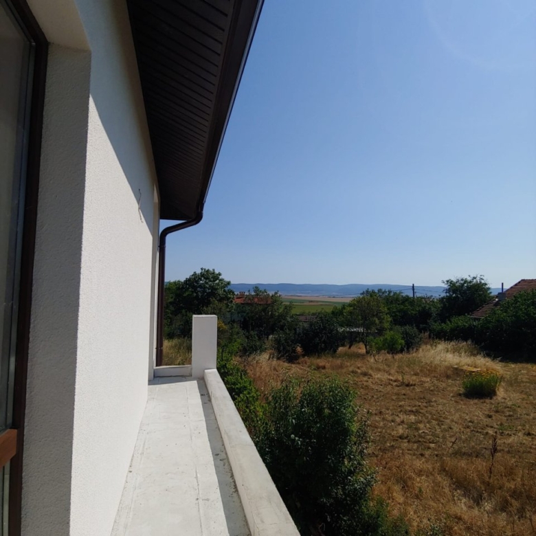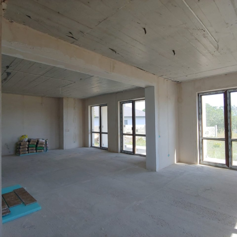 The plot is flat, covers an area of 700 m², and is equipped with a solid concrete fence at the front. Electricity and water supply are centralized. The house has a total area of 195 sqm and consists of two floors. On the ground floor, there are: an entrance hall, a laundry room, a boiler room, a bathroom, a kitchen with a dining area, a large living room with panoramic windows, and access to a spacious covered terrace. On the second floor, there are 2 guest bedrooms, a guest bathroom, the master bedroom with a wardrobe and en-suite bathroom, as well as 2 terraces with panoramic views.