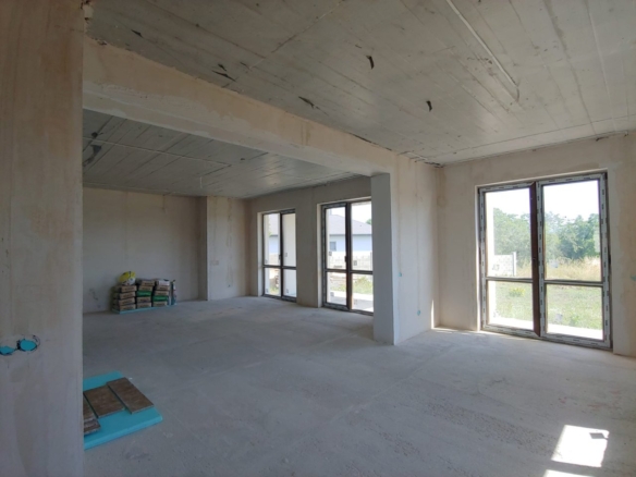 The house is built from high-quality materials: Austrian bricks, REHAU windows, underfloor heating with a TOSHIBA heat pump system, and a TEGOLA soft roof on the roof, manufactured in Italy. Everything is available for a comfortable stay all year round. The house is sold in shell condition with an optional turnkey finish for an additional charge and a selection of materials.