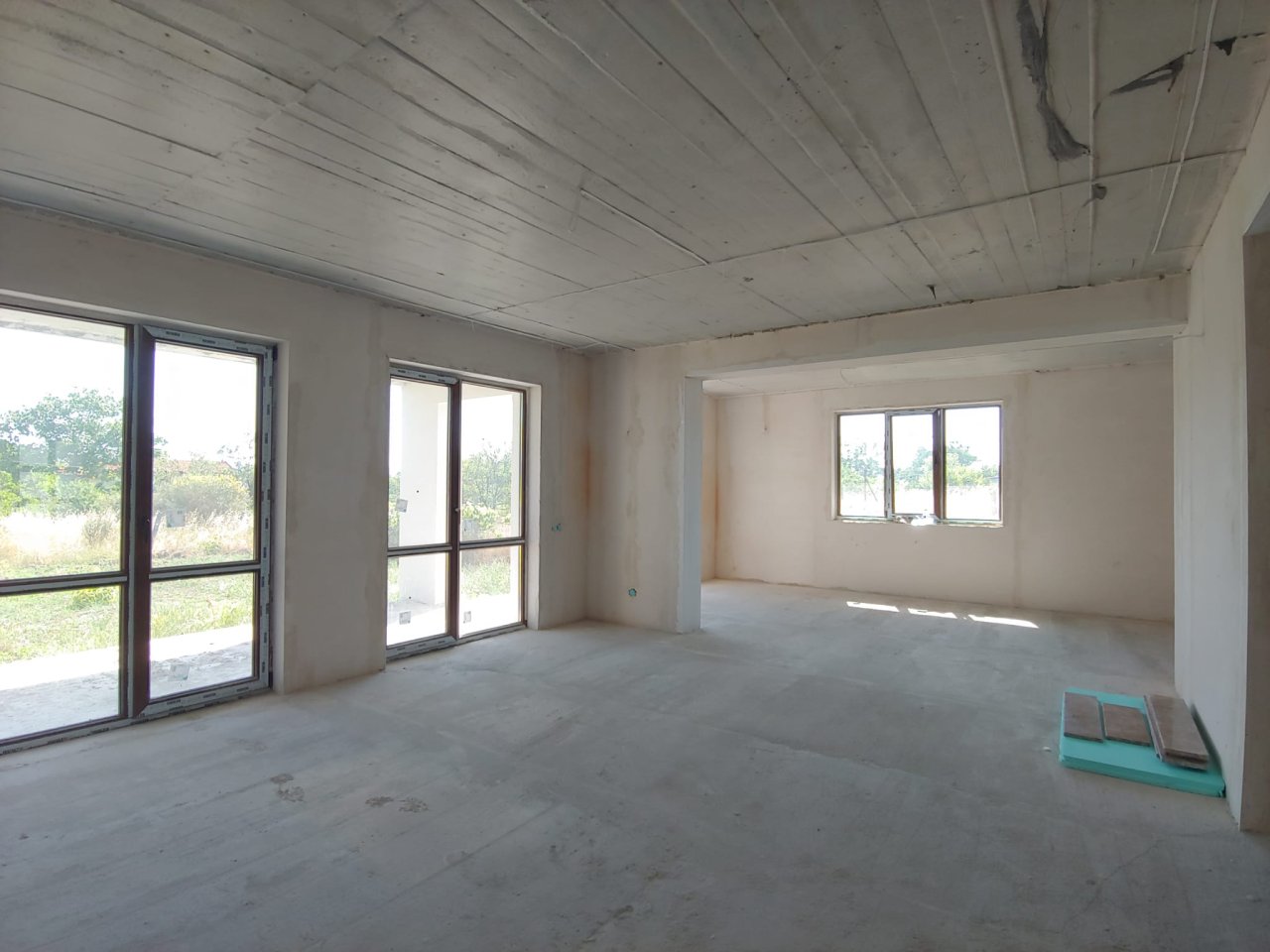The house is built from high-quality materials: Austrian bricks, REHAU windows, underfloor heating with a TOSHIBA heat pump system. The roof features a TEGOLA membrane roof manufactured in Italy. Everything is available for comfortable year-round living. The house is sold in shell condition with an optional turnkey finish at an additional cost and includes a selection of materials.