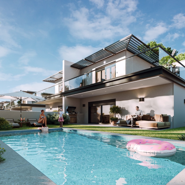 3-bedroom villa, with 250 m2 of gross construction area, private garden and pool, set on a 340 m2 plot, in Herdade do Meio, near Belverde and Verdizela, in Seixal, Setúbal.The villa is spread over three floors. The ground floor consists of a living room with open-plan kitchen and the option for an open-plan office or extra bedroom, and two bathrooms. The upper floor has three bedrooms, one of which is en-suite with a walk-in closet, another bathroom, and a large terrace. The lower floor comprises a garage and laundry room.Equipped with solar panels, storage batteries, KNX home automation system, electric charging station, being 100% energy self-sufficient.In the outdoor area, there is a private garden, swimming pool, and porch.The development offers exclusive access to common areas with paddle tennis courts, gym, cycling paths, and leisure areas.Located in Herdade do Meio, Amora, Seixal, it’s 10 minutes from Costa de Caparica beaches, 25 minutes from Lisbon, and 20 minutes from Sesimbra center. Seixal center is 10 minutes driving distance, offering a wide range of shops and services. Verdizela Park is 5 minutes walking distance. Fórum do Seixal, with various shops and restaurants, is 15 minutes driving distance. Great access to A2 and A23 highways, being 5 minutes from the train station to Lisbon. Humberto Delgado Airport in Lisbon is 30 minutes driving distance.