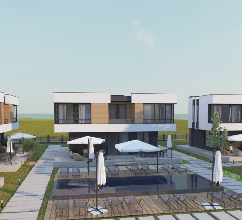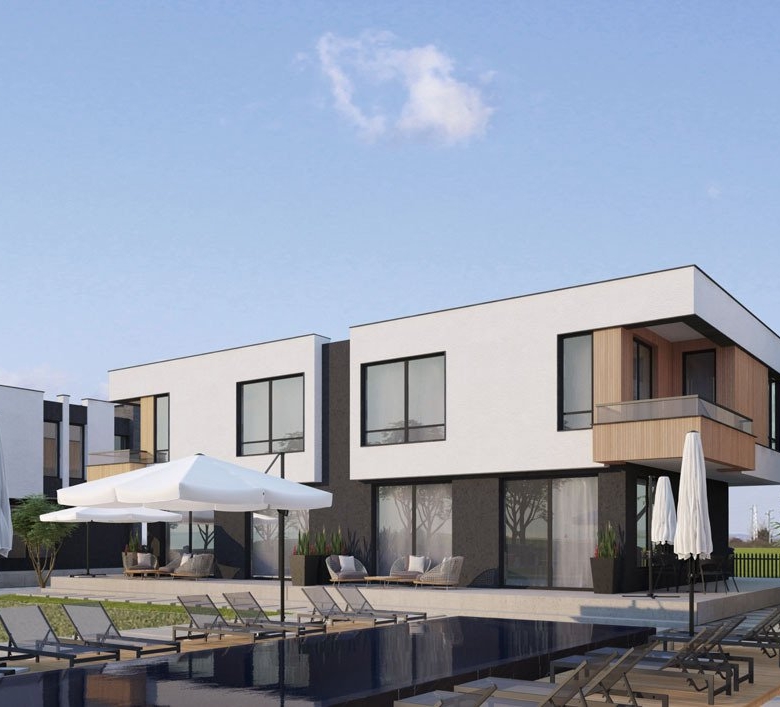 The Ravda Village complex is located in an ideal, prestigious area – in the resort town of Ravda, only 615 meters from the wide, clean sea beach “Yuzhniy.” Just a five-minute walk from the complex, along the promenade with restaurants, allows owners of two-story modern townhouses to relax in a peaceful environment while enjoying all the benefits of a holiday destination. Shops near the property, markets with fresh fruit and vegetables, fish, and seafood are within walking distance. Owners of townhouses have the opportunity to cook themselves or entertain guests at nearby restaurants offering incredibly delicious dishes of Bulgarian, European, or Asian cuisine. If you’re seeking a more vibrant nightlife, you can visit the long and lively promenade of Sunny Beach with night discos, bars, and casinos. This place is only a 10-minute drive away, or you can use buses. The public transport stop is very close to the complex – excellent transportation links not only to Sunny Beach but also to Nessebar center or St. Vlas are an advantage of this complex.