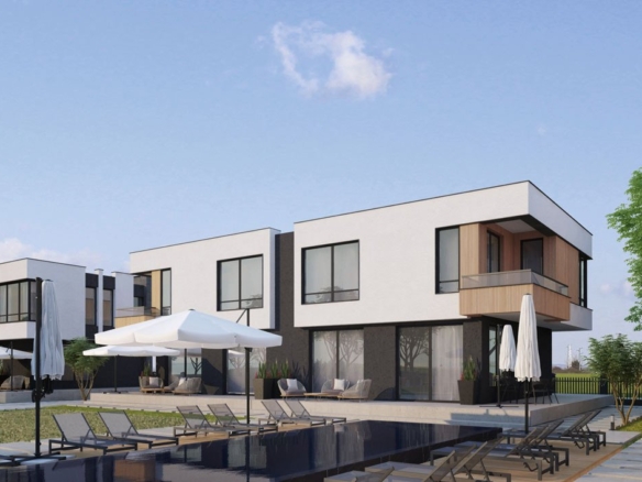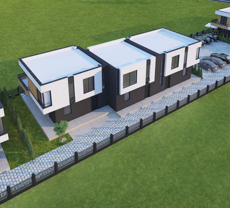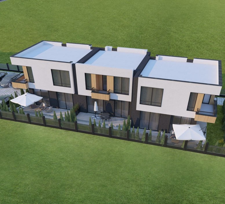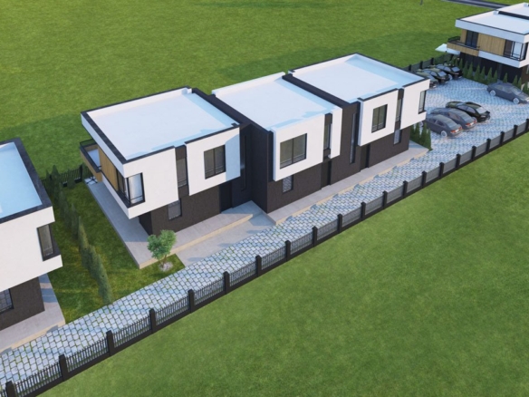 The “Ravda Village” complex consists of 14 separate terraced houses, each with its own parking space, a enclosed property, and an ideal landscape design. The high-quality, modern building features brick walls.