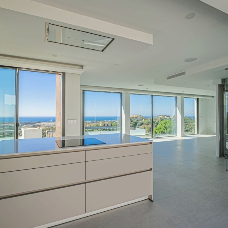 A modern-style glass lift stands out. The interior is a lesson of perfection that make the villas one of the best properties in the area of La Quinta which straddles Marbella and Benahavis.