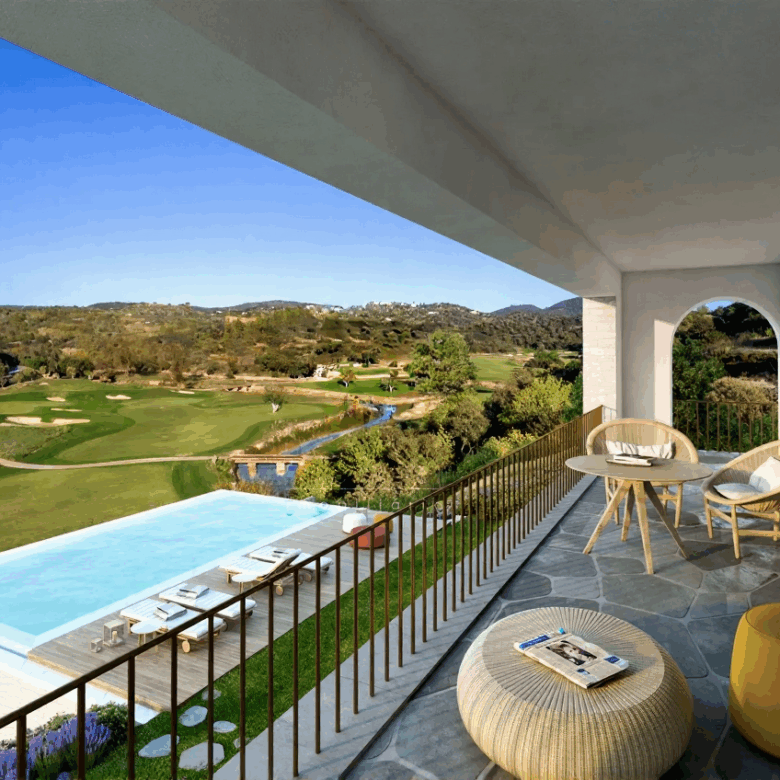 New 3-bedroom villa with pool and garden, set in a luxury golf resort in Querença, Loulé, Algarve.