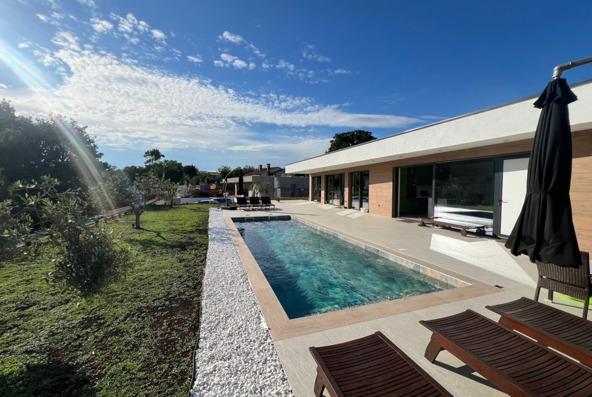 All three villas are built with luxury materials and details, and the interiors are elegant and modern. The outdoor space offers privacy and tranquility, is fenced, and has a separate plot as access. Each house has a large pool with a sun terrace and barbecue, perfect for relaxing and entertaining with family and friends.