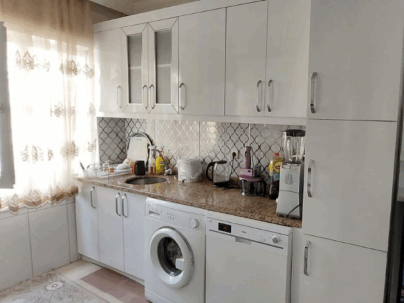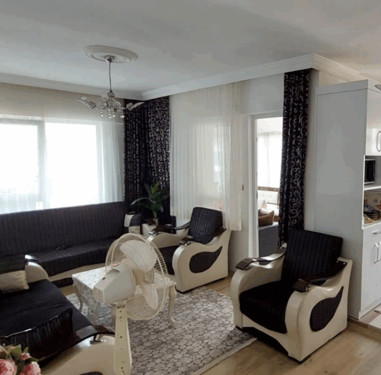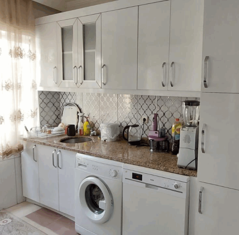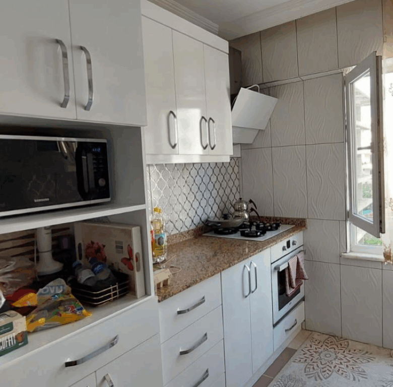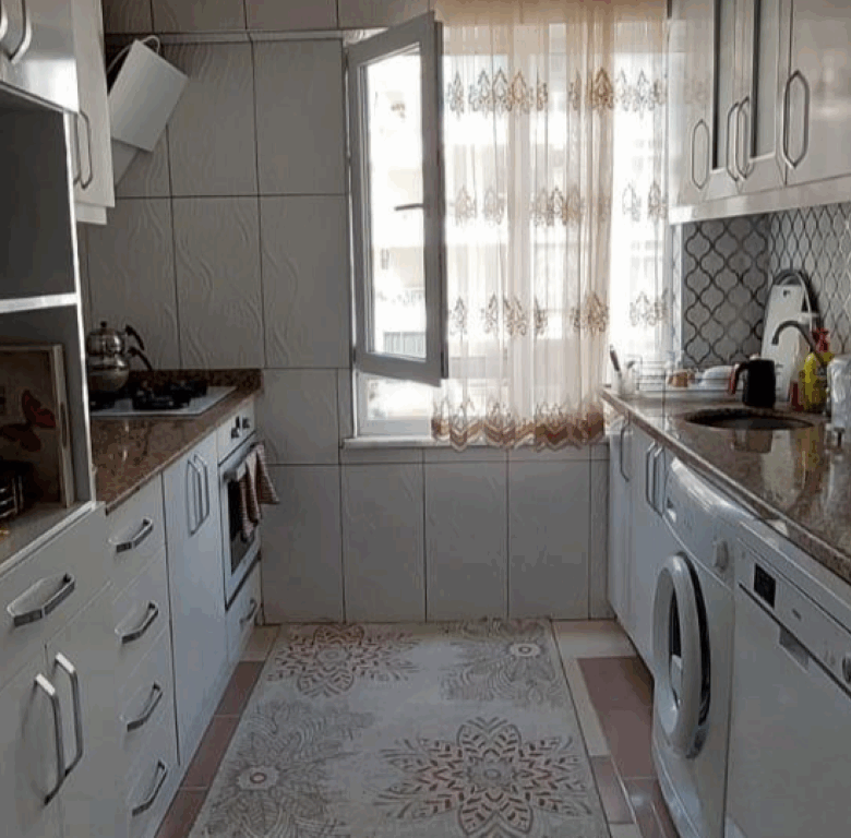 3+1 apartment in Mahmutlar – This 3+1 apartment in Mahmutlar offers a fantastic opportunity for those looking for a spacious home close to the beach. With a total area of 130 m², the apartment is located on the 4th floor and comes fully furnished, including a closed glass balcony.
