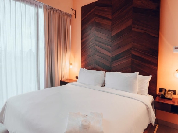 The property features a rooftop terrace with a pool, bar, and restaurant—perfect for relaxing above the city while enjoying tropical views. Each guest room is thoughtfully designed with comfort and flexibility in mind, catering to solo travelers, couples, families, and groups.