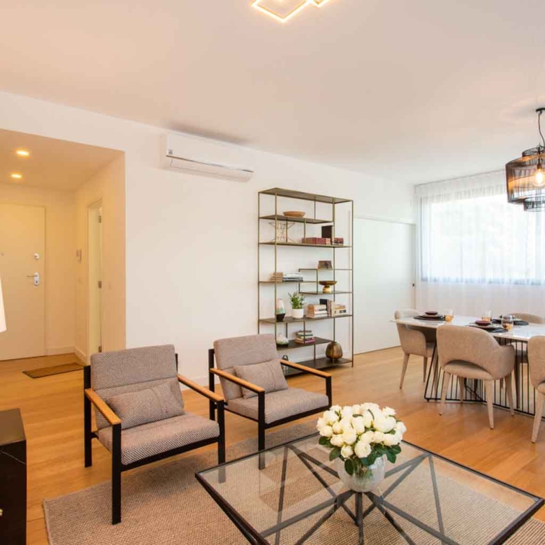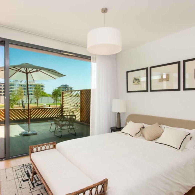 4 bedroom apartment with 171 sqm, brand new, with 2 parking, balcony with 60 sqm, terrace with 128 sqm and jacuzzi, located in the centre of Faro, an area known for tranquillity, beauty of its water ecosystem, gastronomy, white sandy beaches, in the new Lux Garden. This new gated community stands out for the dazzling view over the Rio Formosa, the modern design and the high construction quality. The garden with children’s playground, the leisure areas, the room with fitness equipment, the heated swimming pool for adults, the children’s swimming pool and the security provided by the reception, make the Lux Garden unique and truly exclusive.