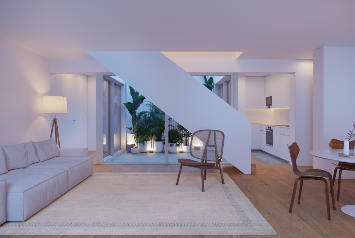 New 4 bedroom duplex apartment, with 216 sqm, 3 parking and balcony, in the Páteo da Cordoaria, Lisbon . The Páteo represents a new way of experiencing Lisbon that arises from the River Tagus. The 1, 2, 3 and 4-bedroom apartments feature different layouts and dimensions, thus allowing you to find the space that best suits your needs. This development includes private parking, a communal swimming pool and a garden with private swimming pool for some apartments. All this is found in a neighbourhood that promotes a sustainable lifestyle connected to culture and commerce.