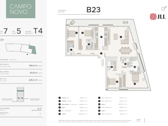4 Bedroom apartment, new, 186 sqm (gross floor area), 3 parking spaces and balcony, at the Campo Novo condominium, in Campo Grande, Lisbon. All apartments have large areas, plenty of natural light, balconies, parking, and storage areas. .The apartments are extremely comfortable featuring elegant finishes. More than just a set of buildings, Campo Novo is a sustainable ecosystem of its own, with a playground, shops, cafés, restaurants, and offices. It stands out for its luxury proposal in every detail: heated indoor swimming pool, rooftop, parking with charging station for electric vehicles, and a gym. Campo Novo is located in Campo Grande, one of the most central areas of greater Lisbon, with a wide range of shops, 10 minutes from Cidade Universitária and the equestrian centre. It is within a short walking distance of several schools, health clinics and the famous Campo Grande garden. It also benefits from excellent road access, being close to Segunda Circular and a vast transport network, namely the underground station (green and yellow lines). Campo Novo is here to rejuvenate Lisbon with a sustainable and elegant lifestyle.