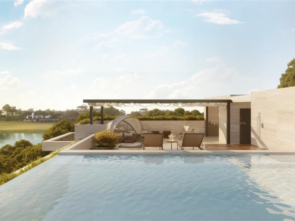 4 Bedroom apartment, new, with 467 sqm (gross floor area), 2 parking spaces, balconies and a terrace with a private swimming pool, in One Green Way, in Quinta do Lago.The One Green Way Development is a new project located in Quinta do Lago, offering privacy and exclusivity worthy of a resort. With spectacular views overlooking the golf course to the north, this gated community has 89 contemporary residences, of which 27 are villas and 62 apartments, spread over three different types: Horizon Residences (4 to 6-bedroom), Panorama Residences (3 and 4-bedroom) and Garden Residences (3 and 4-bedroom). One Green Way invites you to enjoy the many services and amenities offered by Quinta do Lago, as well as the next generation leisure and sports facilities. Each property was carefully designed to offer the best lifestyle, with excellent indoor spaces and outdoor gardens specifically created to provide unrivalled privacy and wellbeing. The residences are distinguished by their elegant design, with the mark of a highly reputed architecture atelier, and by the choice of mature and colourful Mediterranean vegetation. The interior design specialists carefully selected all the details so as to convey a feeling of a relaxed lifestyle, for stronger connectivity, functionality and peacefulness. The resort invites moments of sharing among its residents, always respecting each one’s personal and private space, offering a large selection of amenities and services that enables them to work, engage in physical exercise or simply relax. The equipped gym, golf simulator, spa with sauna, beauty parlour and communal swimming pool are just some of the amenities offered by Green Way. There is also a next generation business centre, clubhouse, restaurant, rooftop bar lounge, another lounge for residents, a reception, concierge, shop, outdoor running and fitness track, padel courts, and a children’s playground. With a prime location, One Green Way provides easy access to the region’s best golf courses, as well as a selection of stunning beaches and the vibrant shopping area of the centre of Almancil. Merely 20-minute driving distance from Faro International Airport, Quinta do Lago has easy access to the main regional road network, enabling easy driving to anywhere in the Algarve or other municipalities of the region.One Green Way is the perfect place to enjoy a comfortable and unforgettable stay at Quinta do Lago.