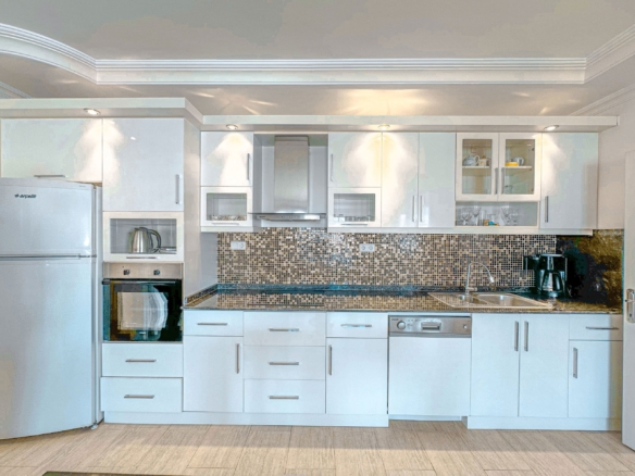 Separate Kitchen:One of the apartment’s standout features is the separate kitchen—an element especially appreciated by many international buyers. The white cabinets and marble-look countertops provide a clean, modern appearance, while the dining area’s placement offers practicality for everyday use. Slight adjustments could open up the space even more, giving it an even brighter feel.