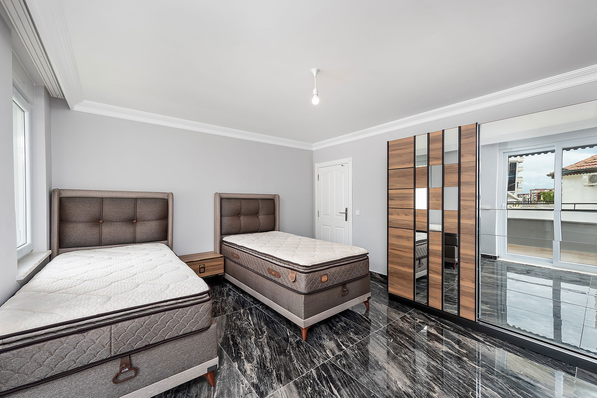 Additional bedroom with two single beds and mirrored wardrobe
