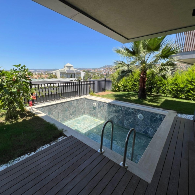 Located just 500 meters from the beach, this 4-room villa in Alanya’s Konaklı district is part of a high-concept residential project designed for full-time living. The villa offers private green space, a swimming pool, separate entrance, and full spa-level shared amenities.