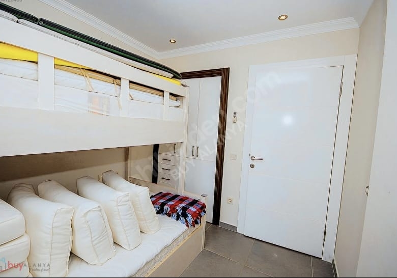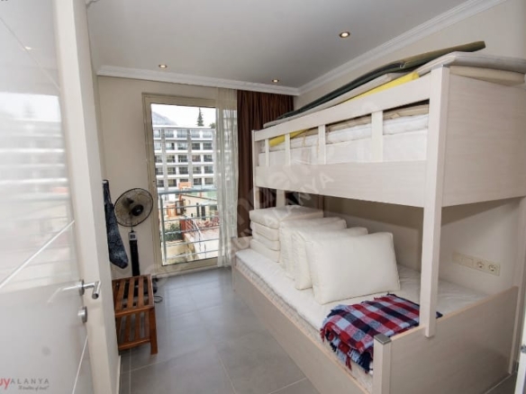Garden duplex apartment in Kargicak – This garden duplex apartment in Kargicak offers a spacious 190m² living area and is fully furnished. The 4+1 garden duplex features stunning sea and castle views, providing a peaceful and luxurious living environment. The complex offers excellent amenities, including two swimming pools, fitness center, BBQ area, children’s playground, and 24/7 security.