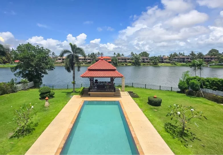 Available for sale, this stunning extra-large 5-bedroom waterfront villa is located in the heart of Laguna Phuket—a world-class integrated resort and one of the island’s most prestigious residential communities. Set directly on the edge of a peaceful lagoon, the villa offers a refined tropical lifestyle with spacious interiors, serene water views, and access to Laguna’s premium amenities. Villa Highlights Absolute Lagoon Frontage:Enjoy panoramic views of the calm lagoon waters from multiple living areas, the pool deck, and the master suite. The setting is tranquil, private, and ideal for unwinding in style. Elegant Open-Plan Living:Designed with comfort and sophistication in mind, the villa features bright, airy interiors with floor-to-ceiling windows that invite natural light and cooling breezes. Five En-Suite Bedrooms:Each bedroom is tastefully furnished and offers privacy, generous space, and garden or water views. The master suite includes a private terrace and an indulgent bathroom with soaking tub. Private Infinity Pool & Garden:Relax by the large private pool with integrated sun deck and outdoor lounge areas, surrounded by mature tropical landscaping. Fully Equipped Kitchen:A Western-style kitchen with high-end appliances makes everyday cooking or entertaining effortless. Outdoor Dining & Entertaining:Covered terrace and open-air sala provide perfect spots for BBQs, alfresco dining, or enjoying Phuket’s golden sunsets. Additional Features:Smart TV, WiFi, air conditioning throughout, full laundry room, maid’s quarters, carport, and 24-hour security within the gated estate. Location Benefits Situated in the prestigious Laguna Phuket community, just minutes from Bangtao Beac Walking distance to Laguna Golf Course, beach clubs, and fine dining Nearby Boat Avenue and Porto de Phuket for shopping, cafes, and supermarkets Close to international schools and healthcare facilities 25 minutes to Phuket International Airport Ideal for: Families, remote professionals, or retirees seeking a peaceful long-term residence in one of Phuket’s most desirable and secure locations. Enquire Now Experience the best of island living in this elegant waterfront home. For more details about the Laguna Waters Phuket lifestyle and community, visit our full article here.