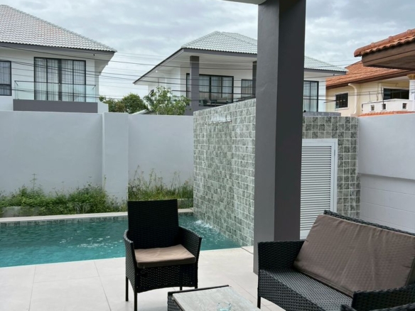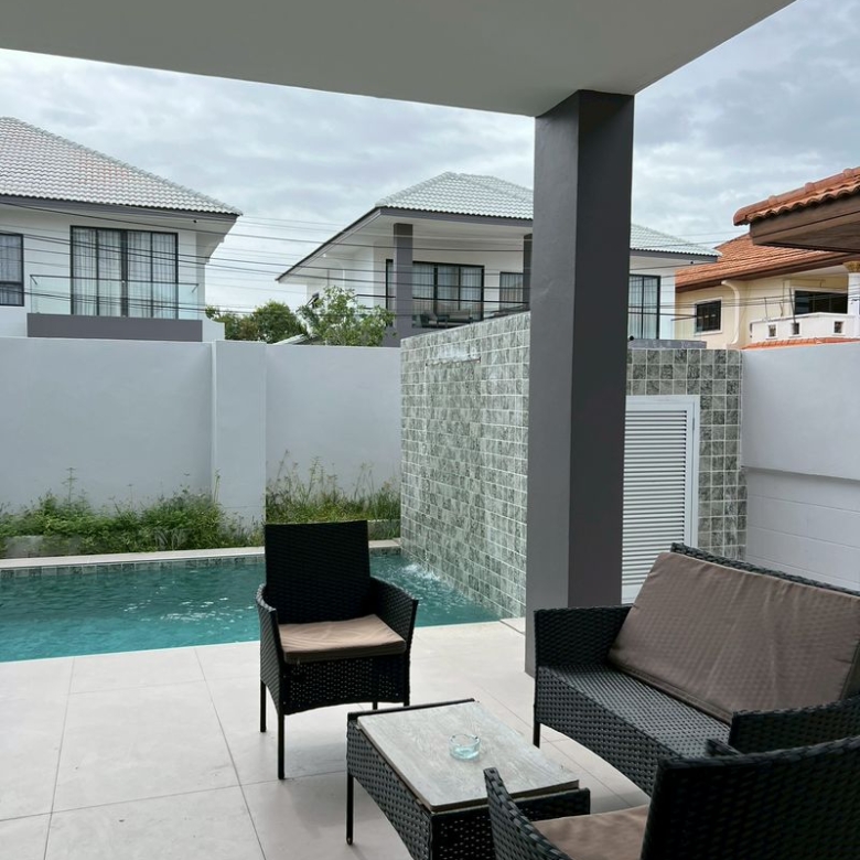 This stunning two-storey private pool villa is located only a short 5-minute walk from Jomtien Beach, offering the perfect combination of luxury living and seaside convenience.