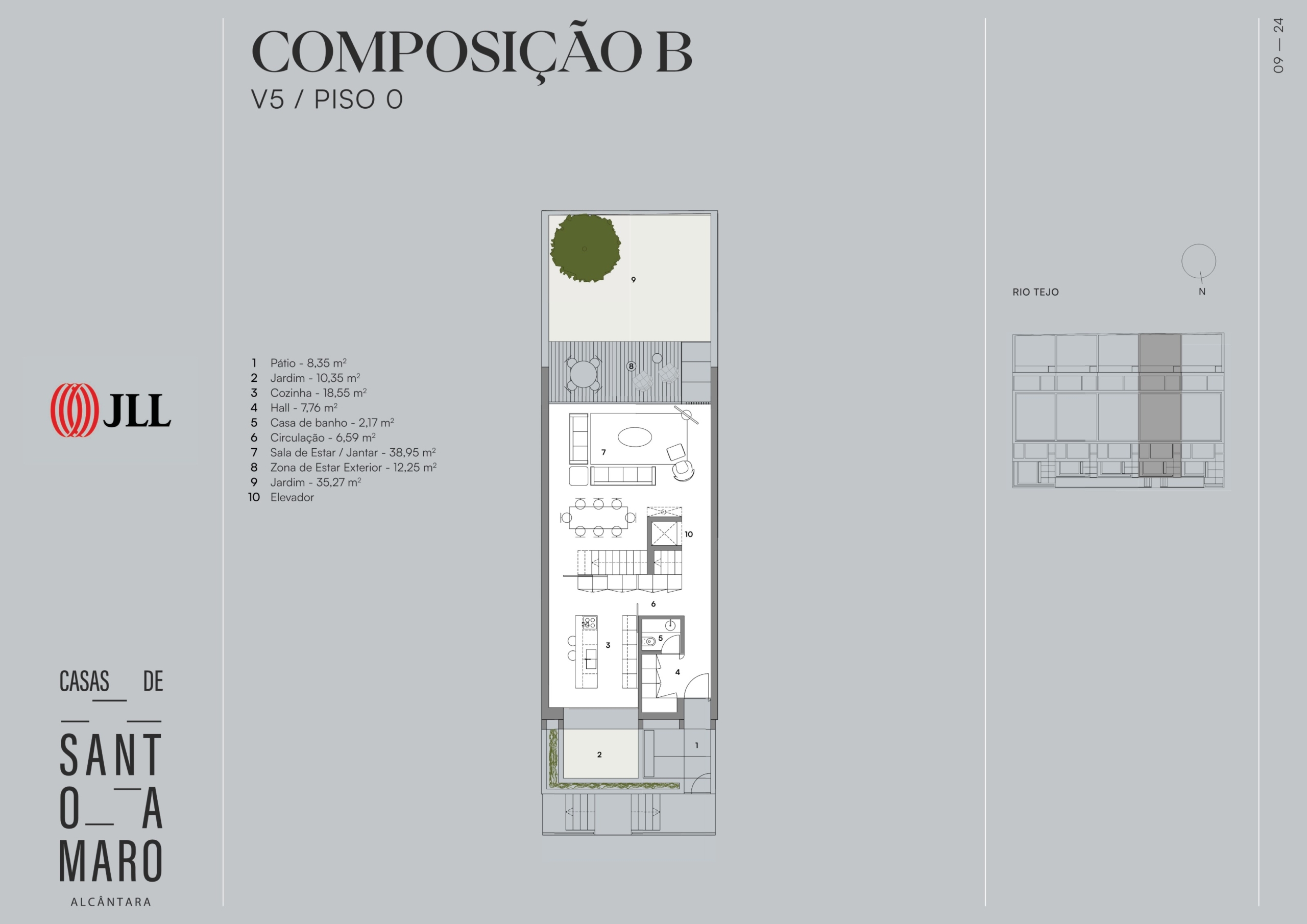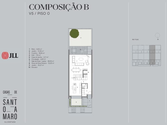 New 5-bedroom villa with 292 sqm (gross floor area), total external area of 102 sqm and 3 parking spaces, at the Casas de Santo Amaro, in Alcântara, Lisbon. All the villas have plenty of natural light, balconies and/or gardens with private jacuzzi that may have a unique view of the river Tagus. It also has a communal access to the car park and to the private area of the villas. Some of the villas also have a private elevator.The Casas de Santo Amaro development invites you to enjoy a serene life in one of the biggest housing development areas in the capital. This condominium represents a new Lisbon that grows in a sustainable manner, ideal for a comfortable family life. Located near the Hungarian Embassy and the Pestana Palace Hotel, in Alcântara, where you can take the opportunity to go for a stroll along the river, it is just a few minutes’ walking distance from great schools, and also has good access to the entire city and several transport options.The Casas de Santo Amaro development embraces a new housing generation that is growing steadily to give life to a more elegant and sustainable Lisbon.