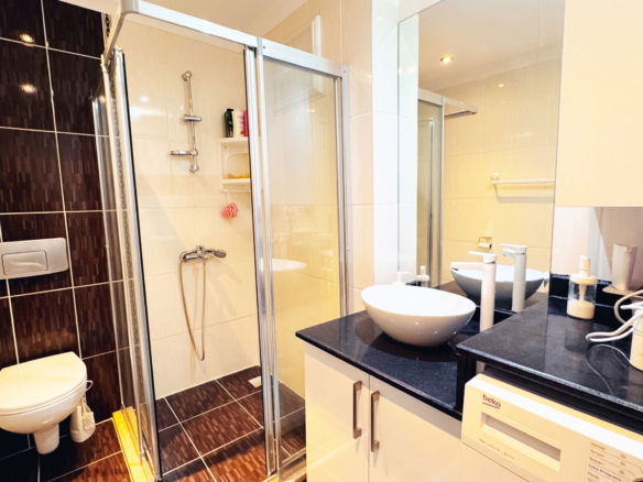 The apartment belongs to a secure, well-managed residential complex. Furthermore, the building includes features rarely found in central Alanya properties.