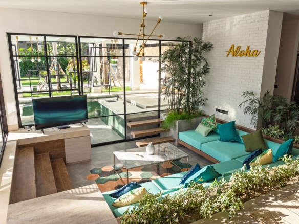 Nestled in the secluded rice fields of trendy Canggu, this new FREEHOLD offering to the market is a unique destination which has been ‘designed to unwind’ – in luxury and style at this stunning new five-bedroom tropical Balinese getaway which offers numerous relaxation, entertainment and recreation areas.