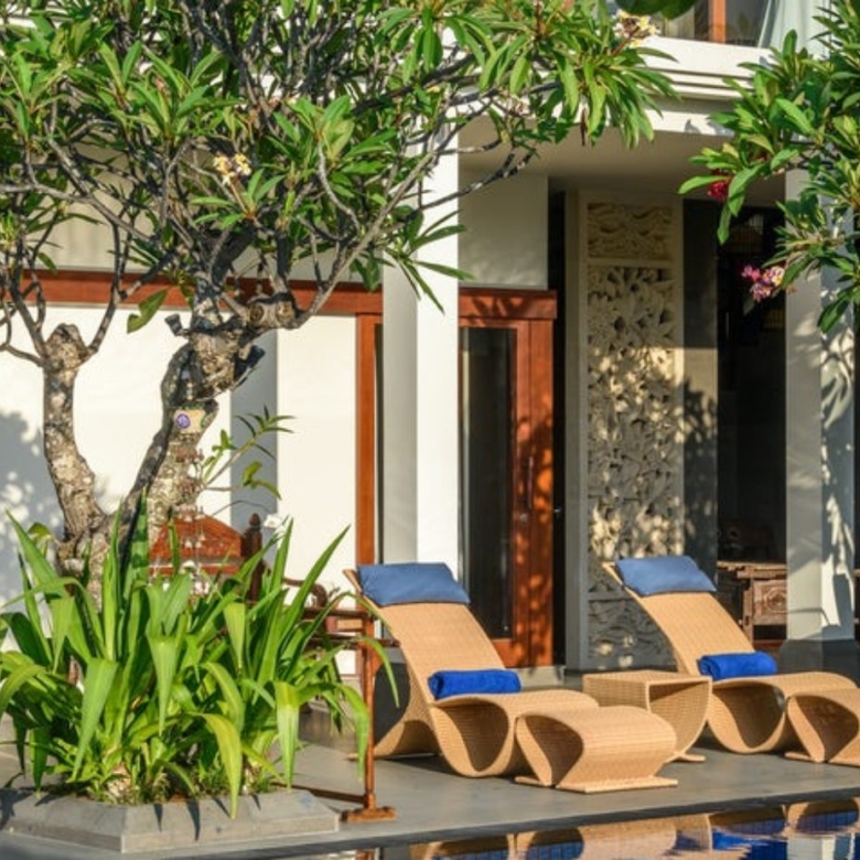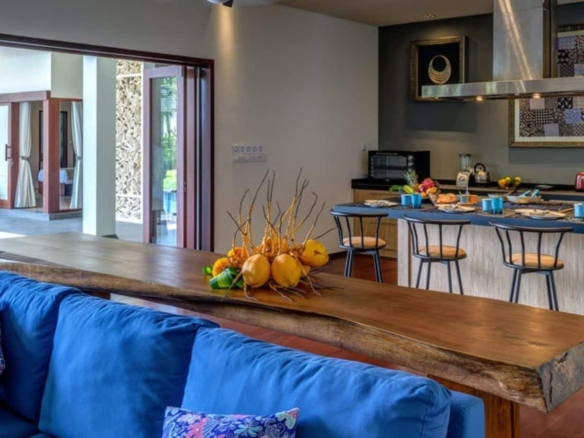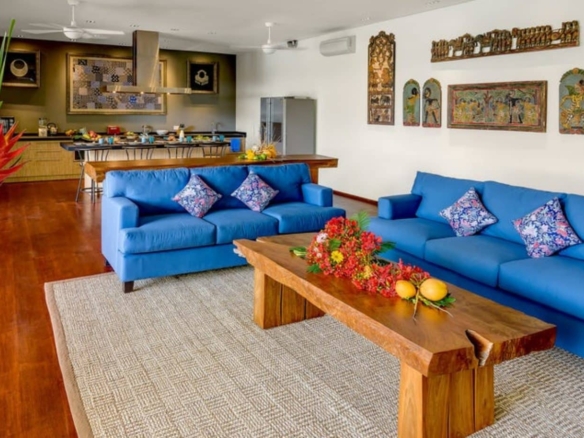 Set within enchanted gardens, the 1320 Sqm fully-furnished, contemporary villa was inspired by traditional Balinese architecture, and Feng Shui. There are several areas for lounging and dining, including communal living, an open kitchen, and lots of private spaces. Includes Villa Manager, Butlers, Housekeepers, Chefs, Gardeners, and Engineers.