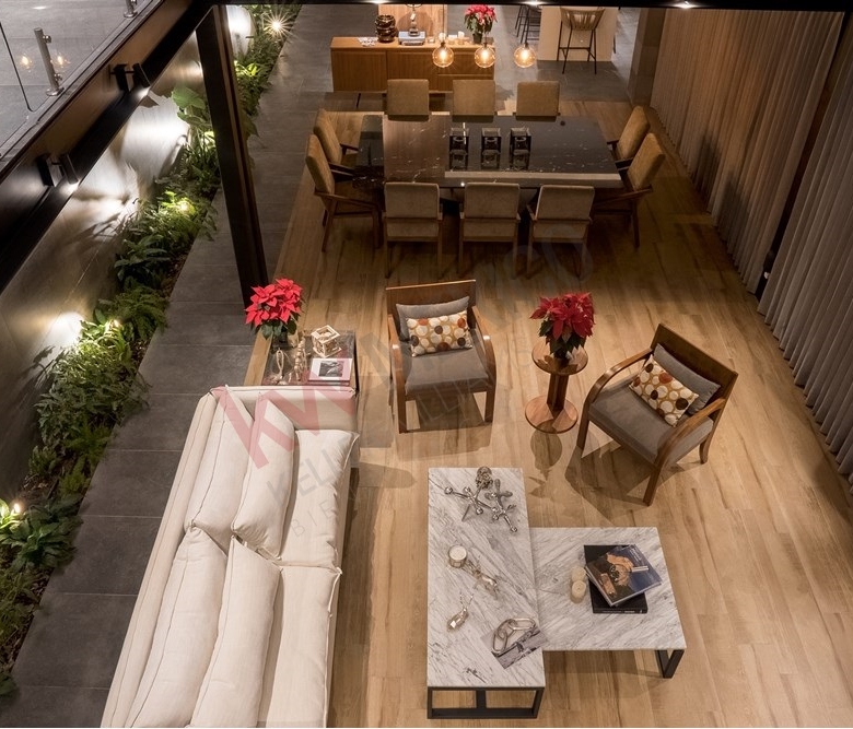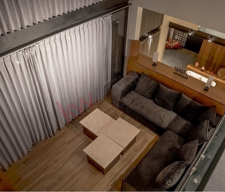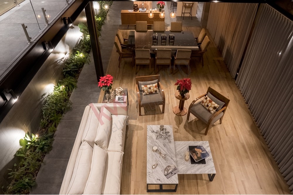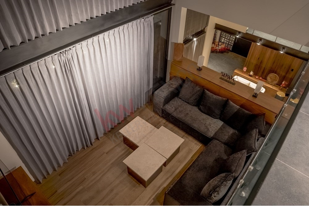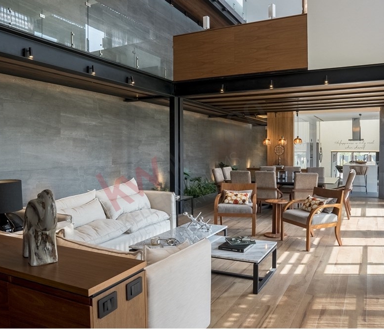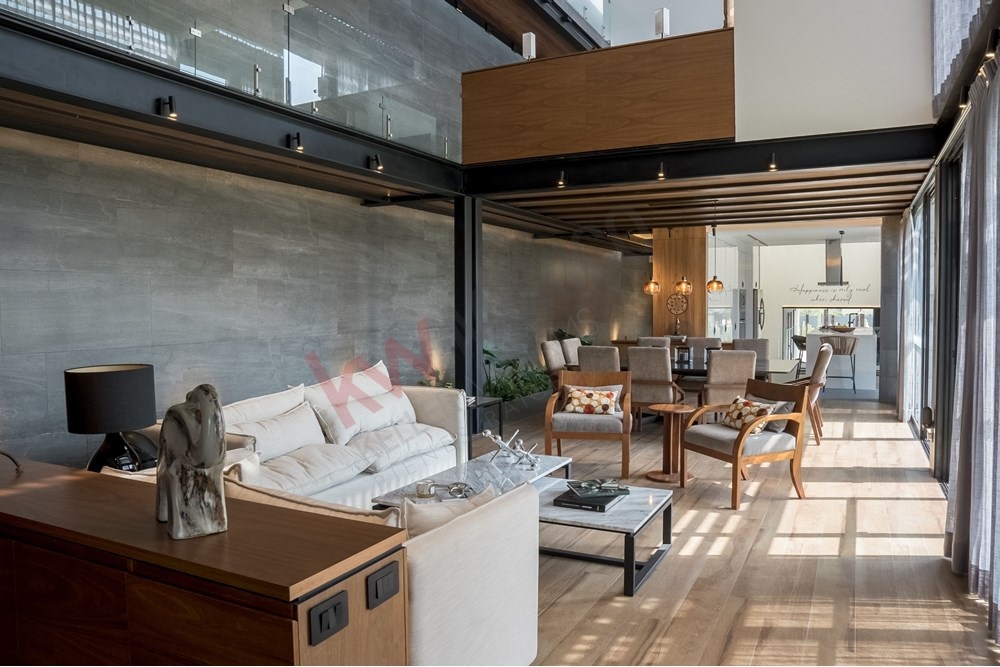 The social area welcomes you with double-height ceilings, expansive windows, and a glow that shifts beautifully from sunrise to twilight. 🌅 It’s the kind of room that quietly reminds you, you’ve arrived.